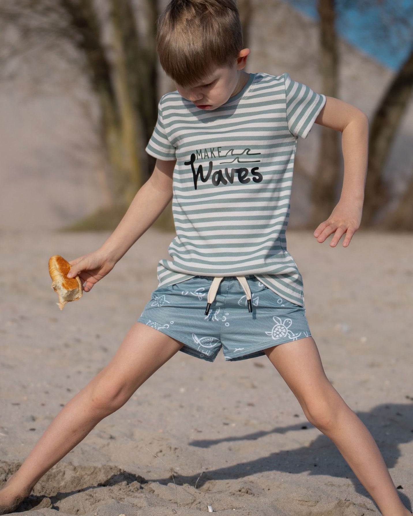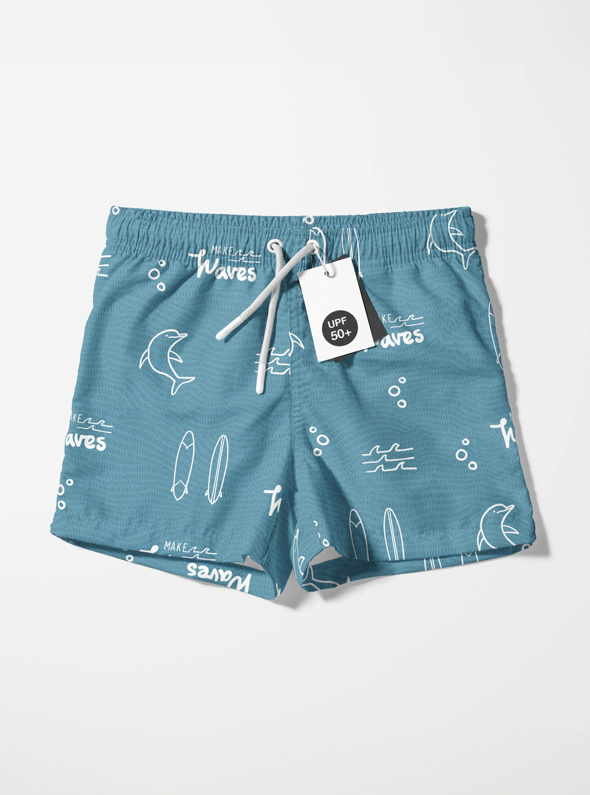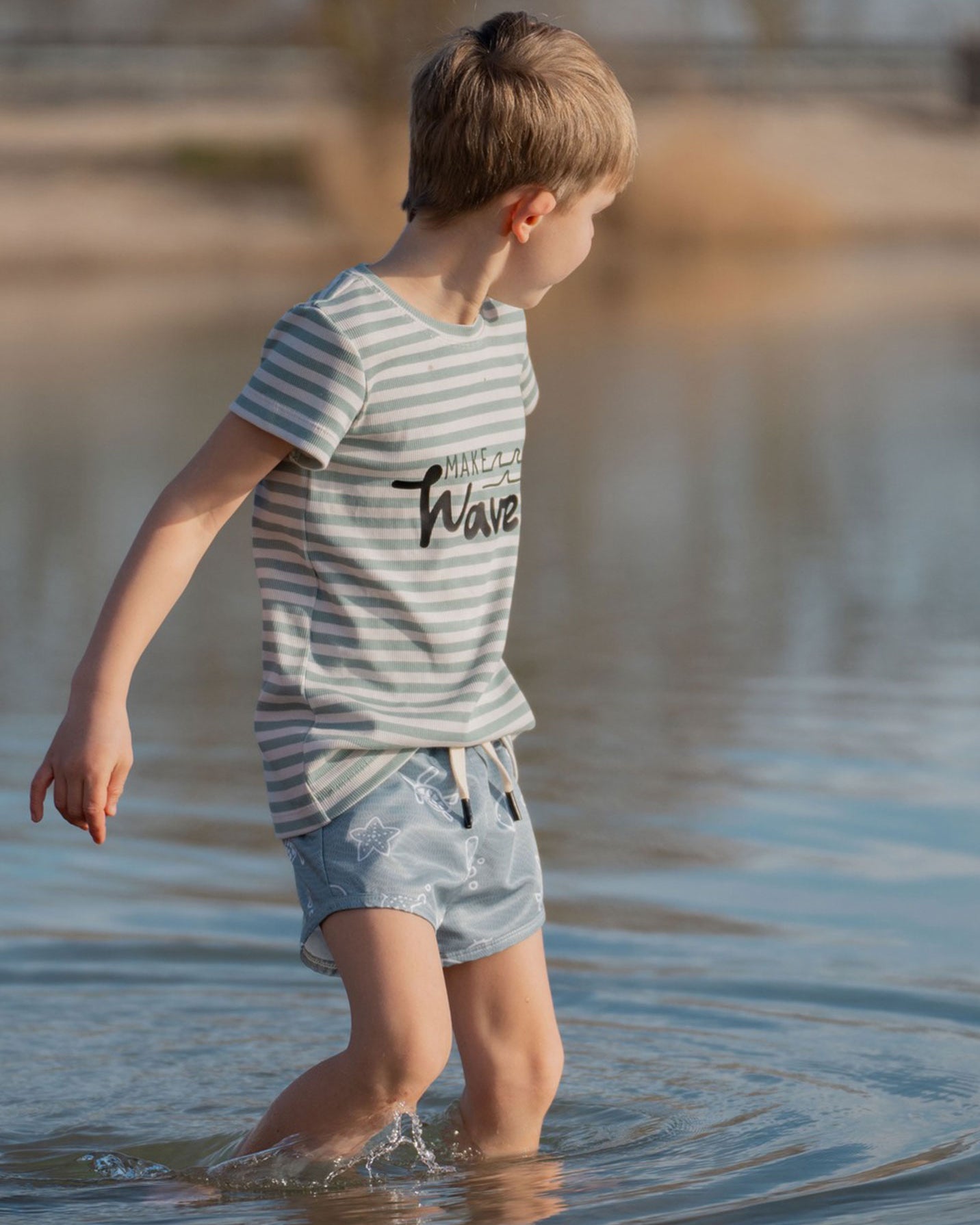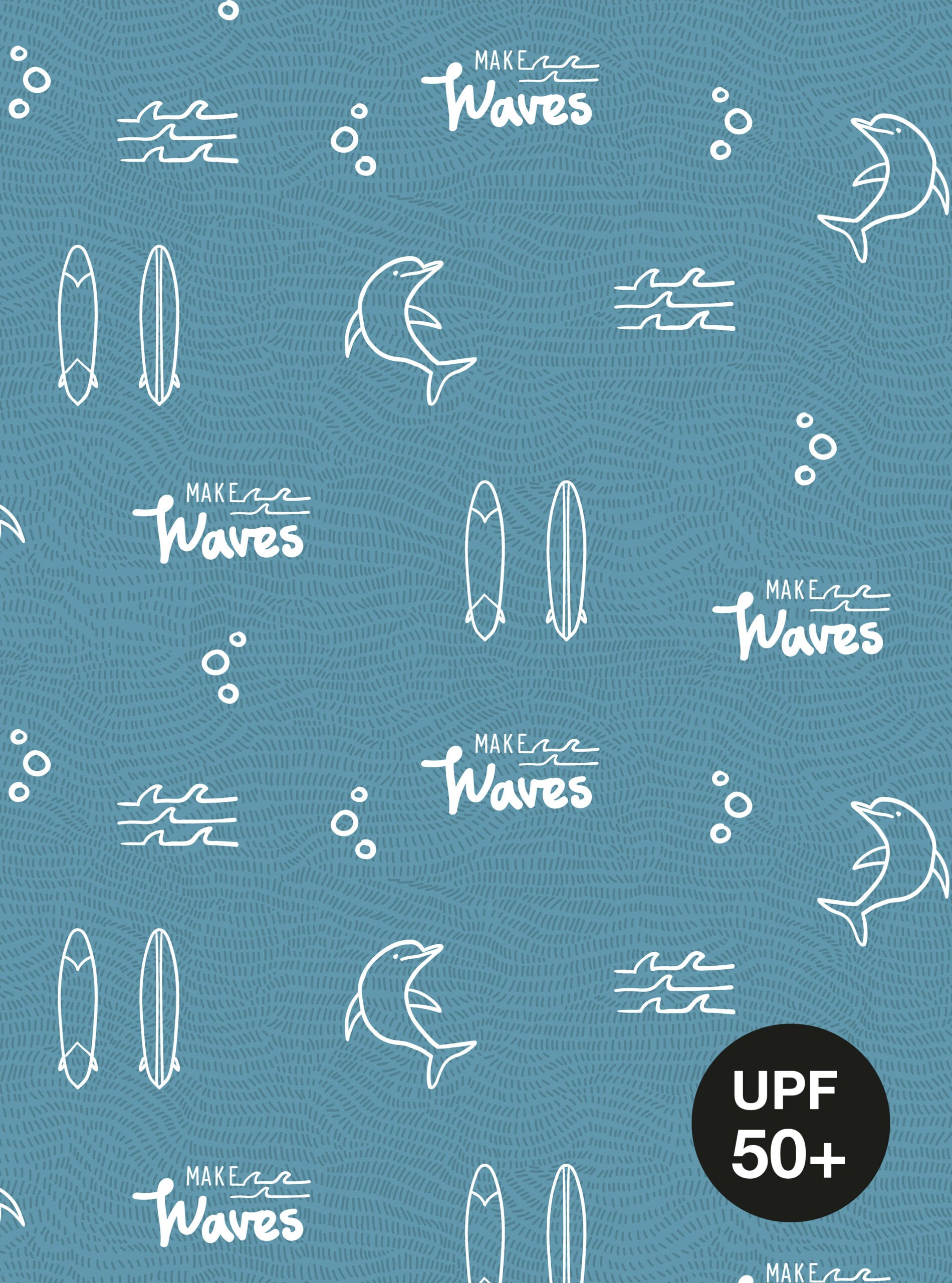 0,5 m Badeshortstoff "Make Waves" delphinium blue weiß Meterware