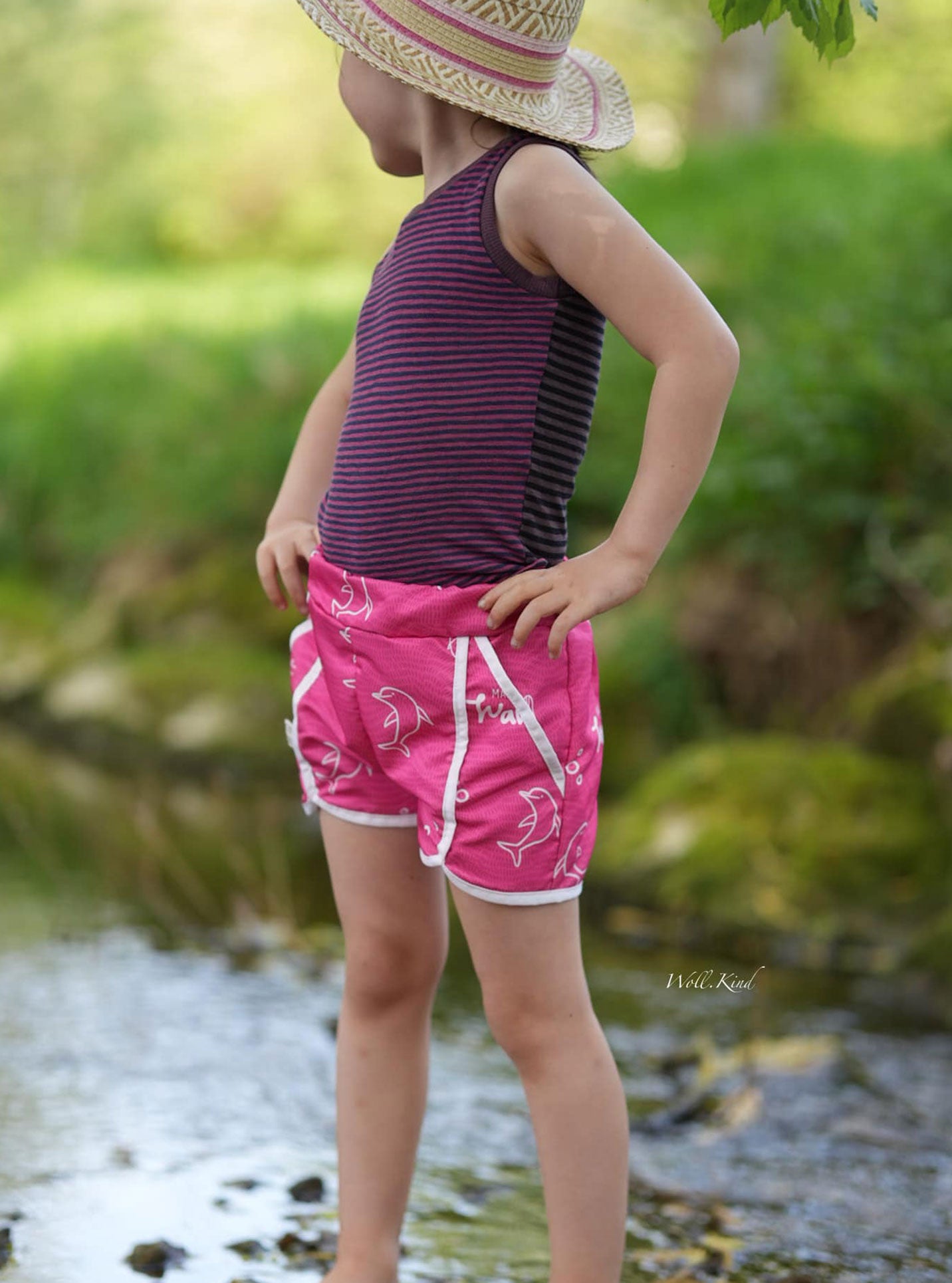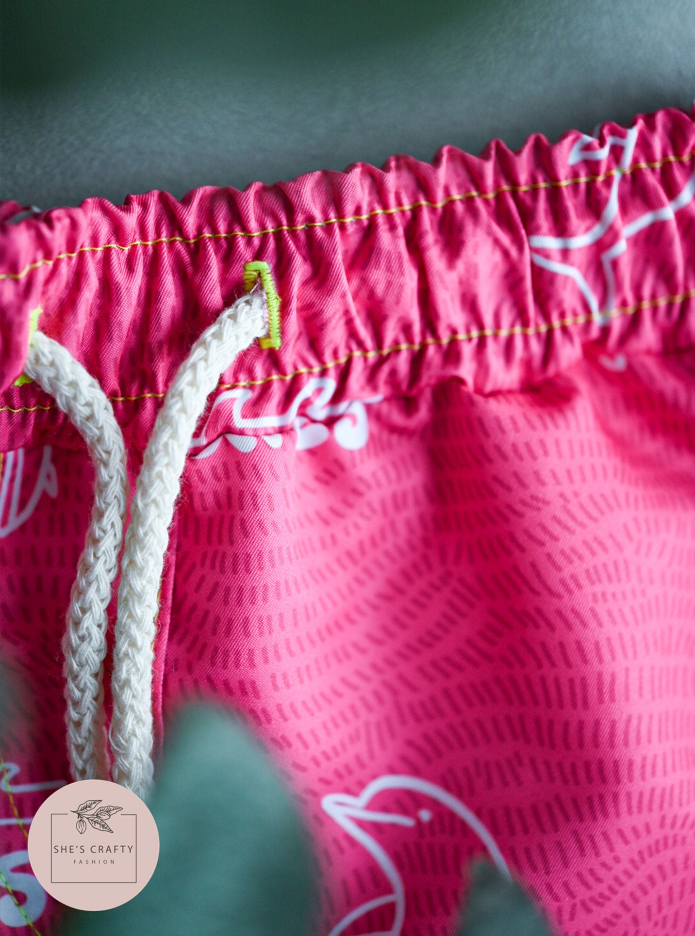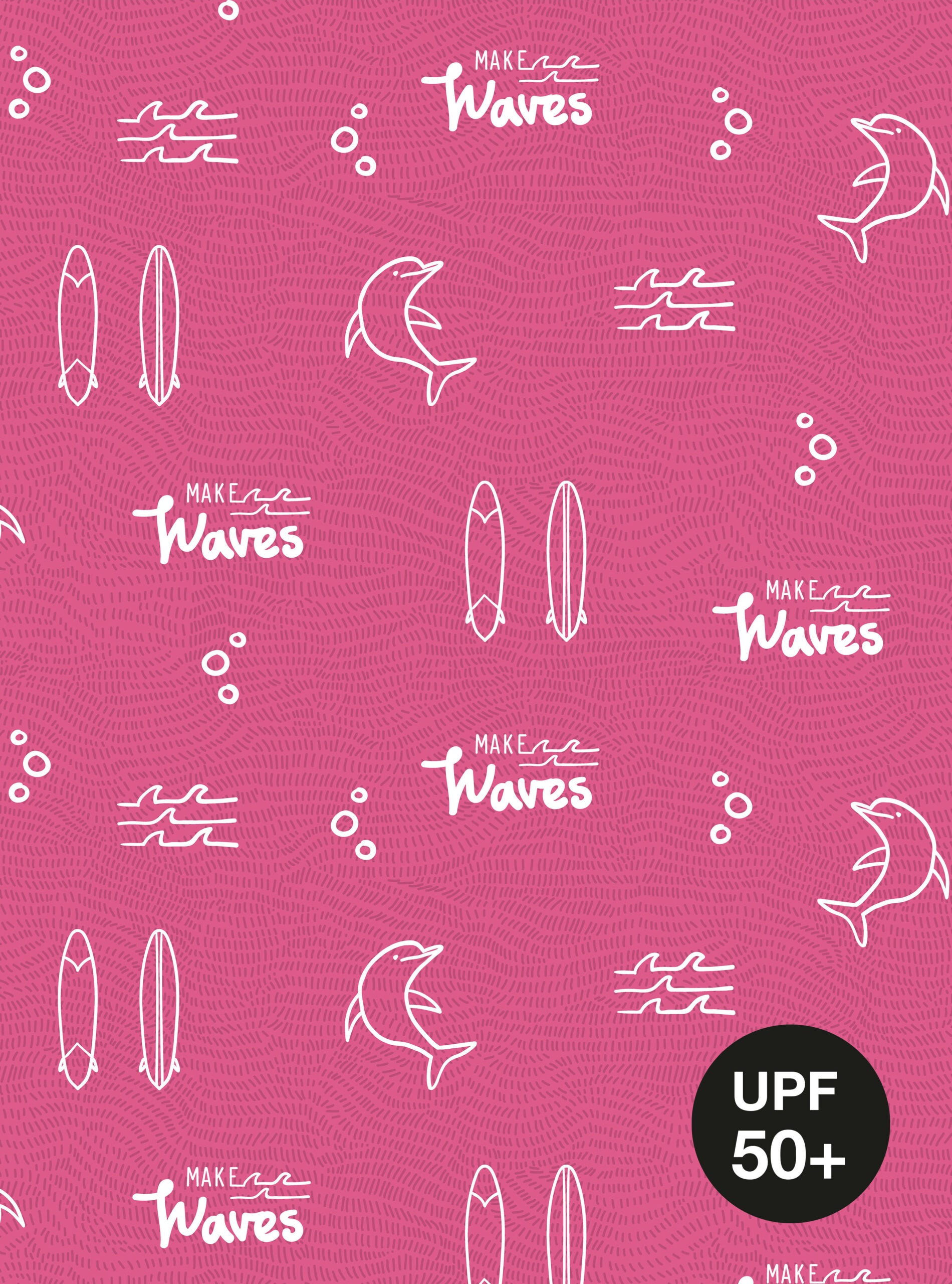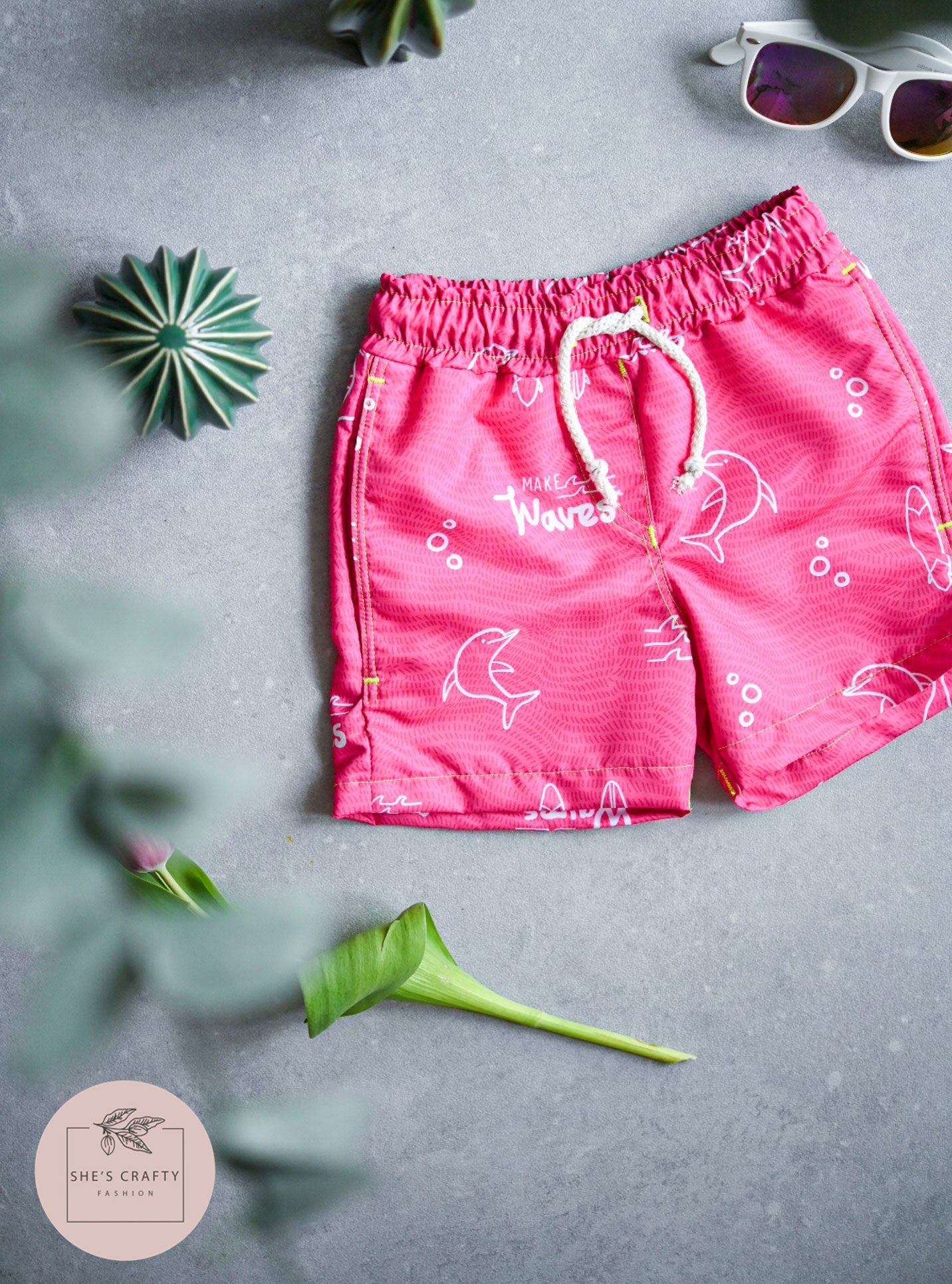 0,5 m Badeshortstoff "Make Waves" shocking pink weiß Meterware