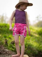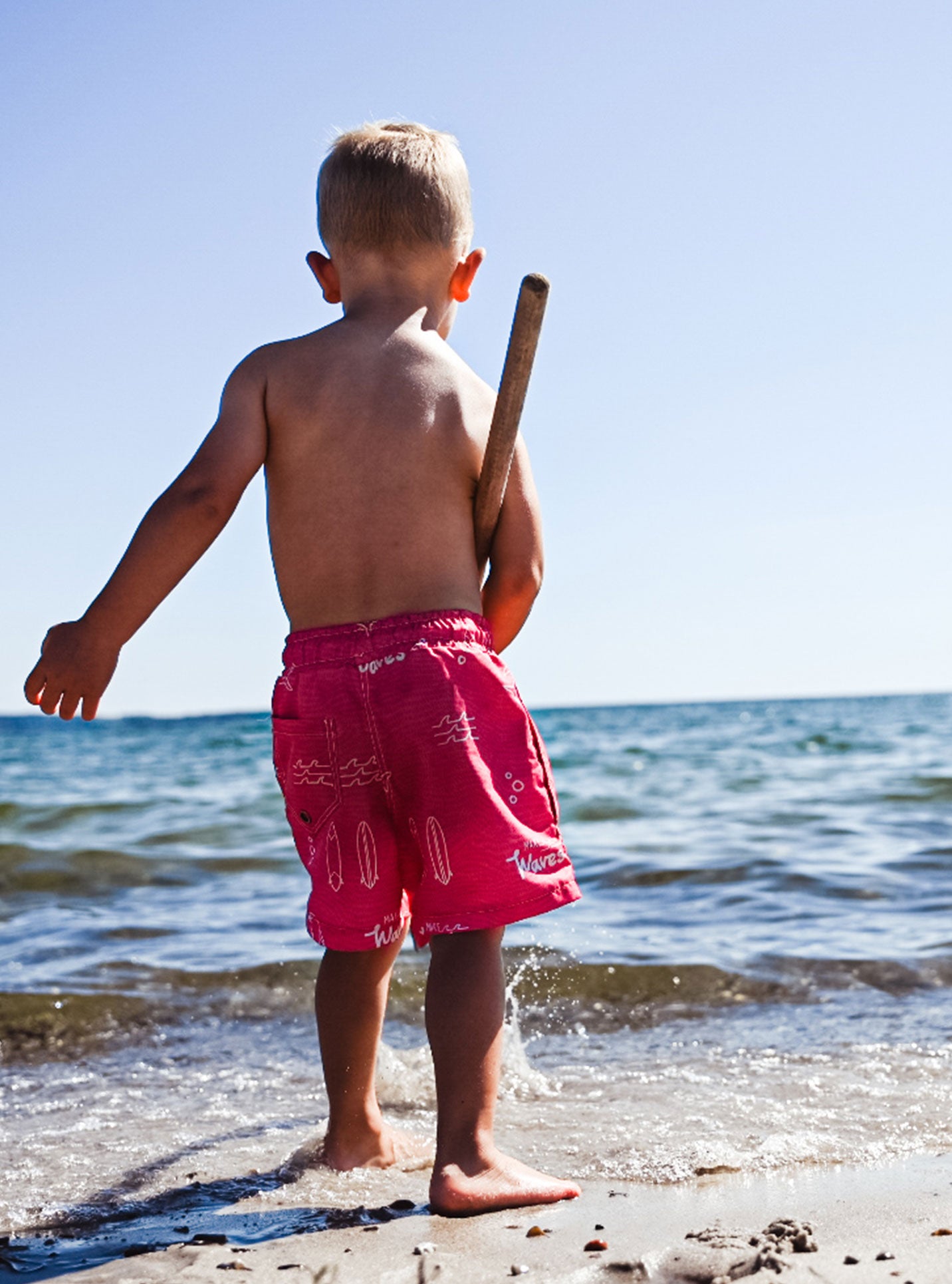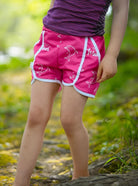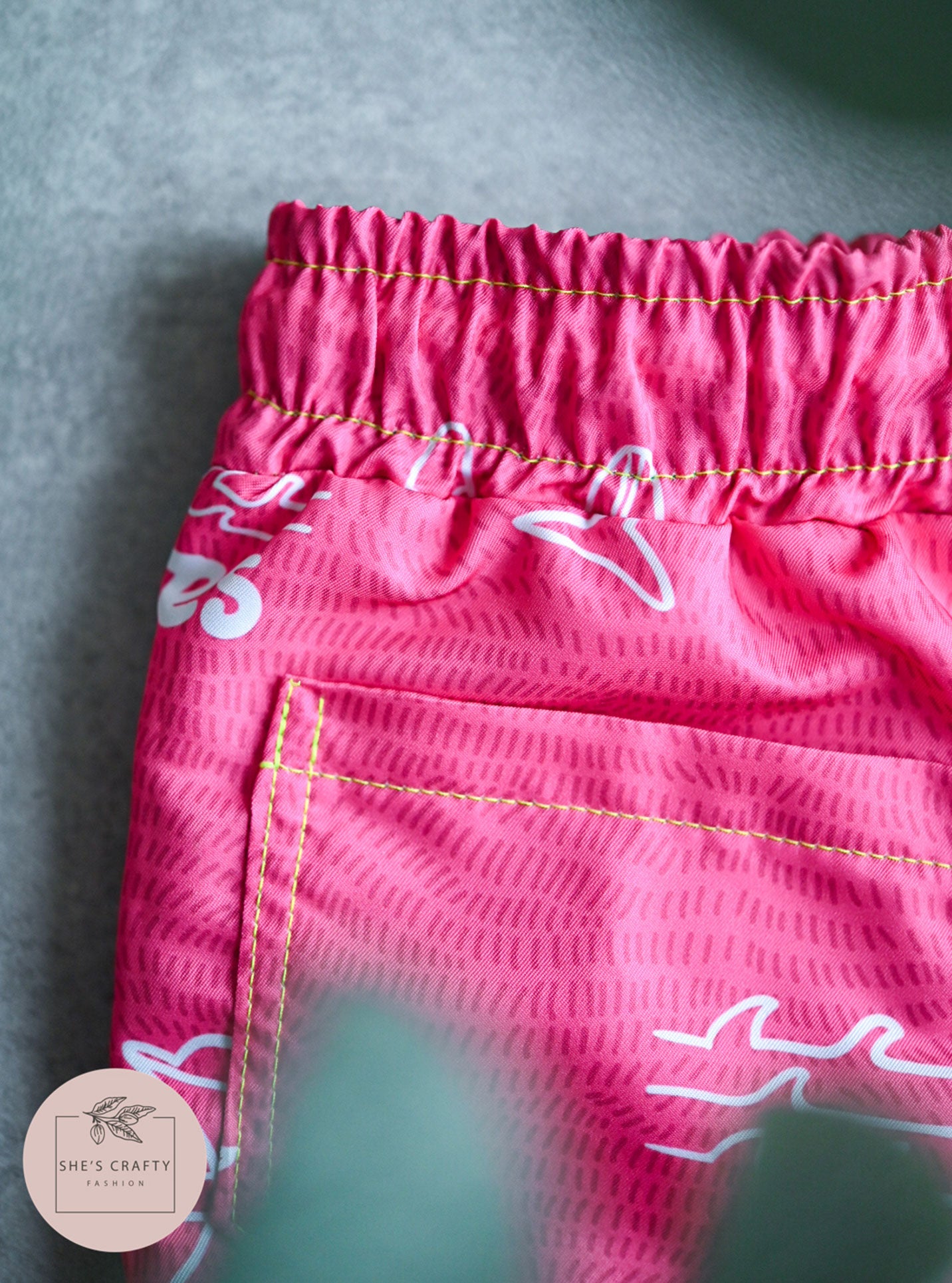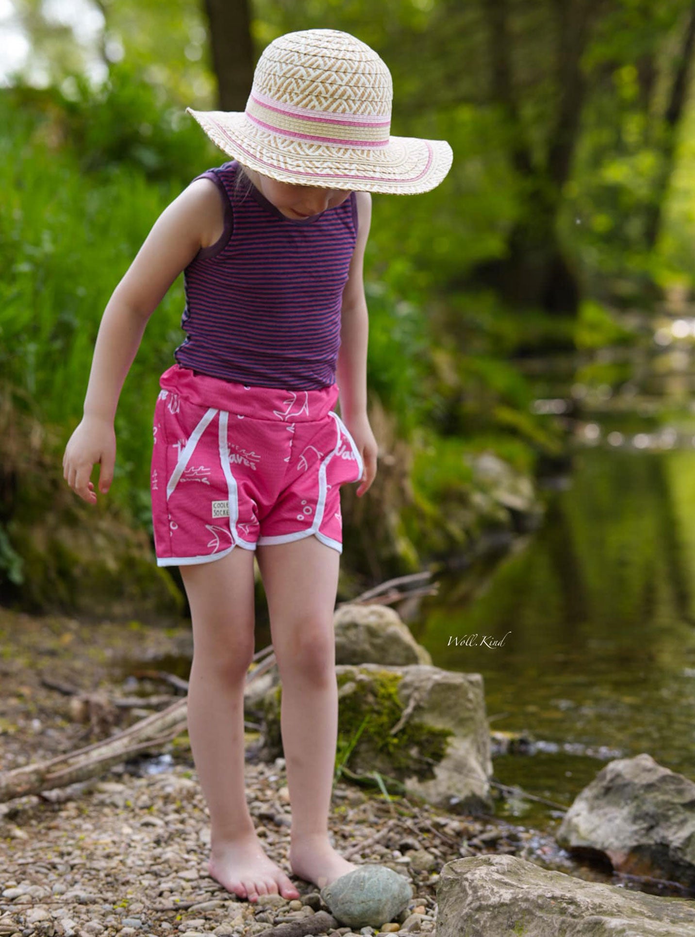 0,5 m Badeshortstoff "Make Waves" shocking pink weiß Meterware