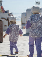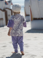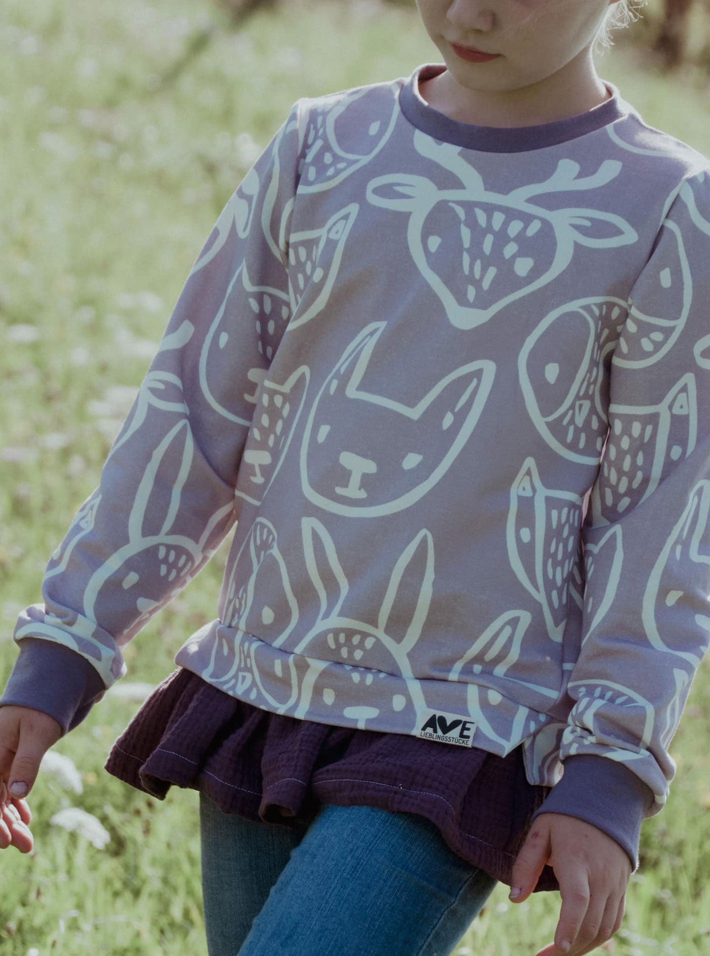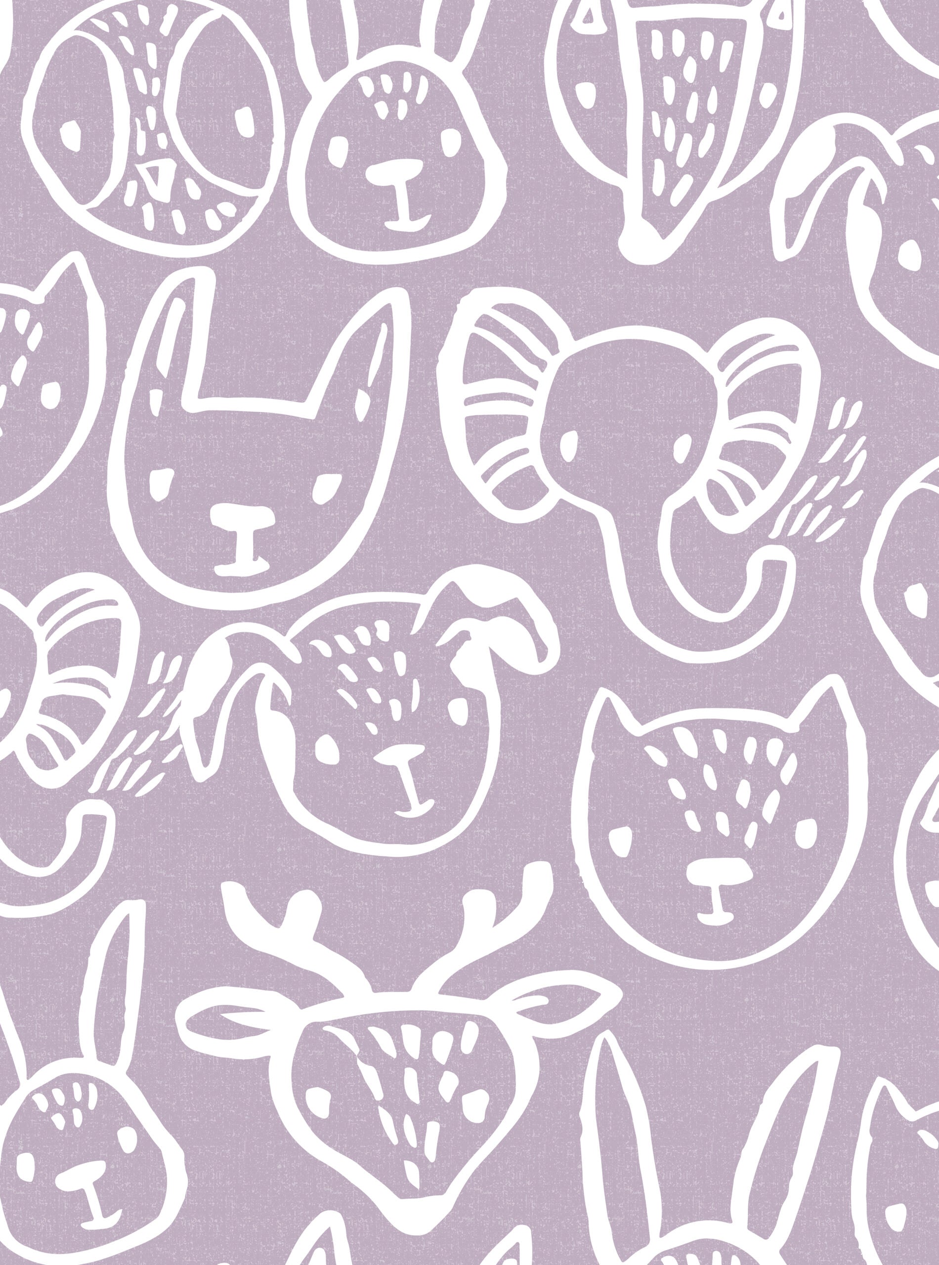 0,5 m super softer Bio-French Terry "Treffen der Tiere maxi" lavender frost meliert offwhite Meterware