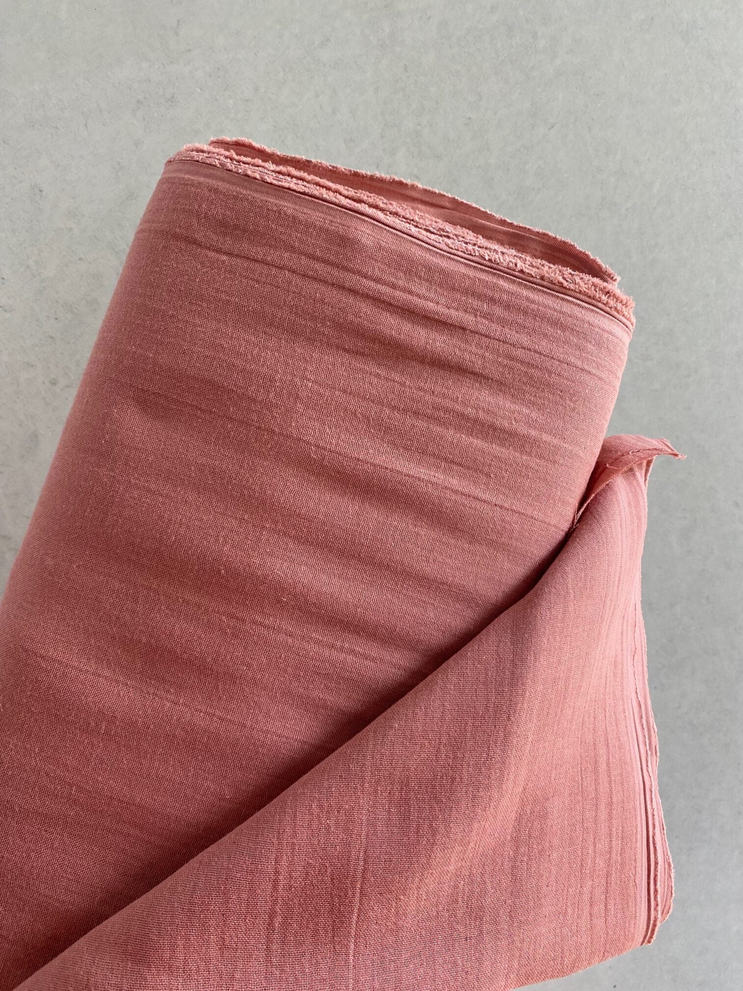 Der Stoff wird glatt geliefert und entwickelt seine typische Musselin-Struktur erst nach dem ersten Waschen. Je wärmer gewaschen wird, desto ausgeprägter zeigt sich der charakteristische Crinkle-Effekt. Für ein besonders schönes Ergebnis empfiehlt es sich, den Stoff vorzuwaschen und liegend zu trocknen.