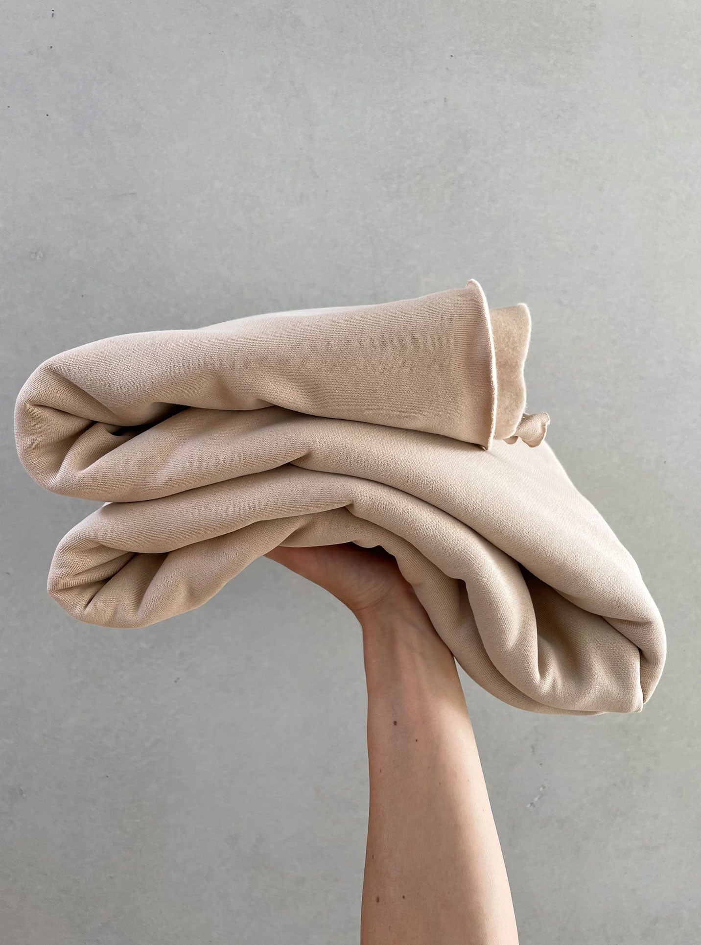 Du kannst beide Seiten nach außen vernähen – glatt oder mit leichter Teddystruktur. Perfekt für Hoodies, Pullover, Jogginghosen oder lässige Jacken.