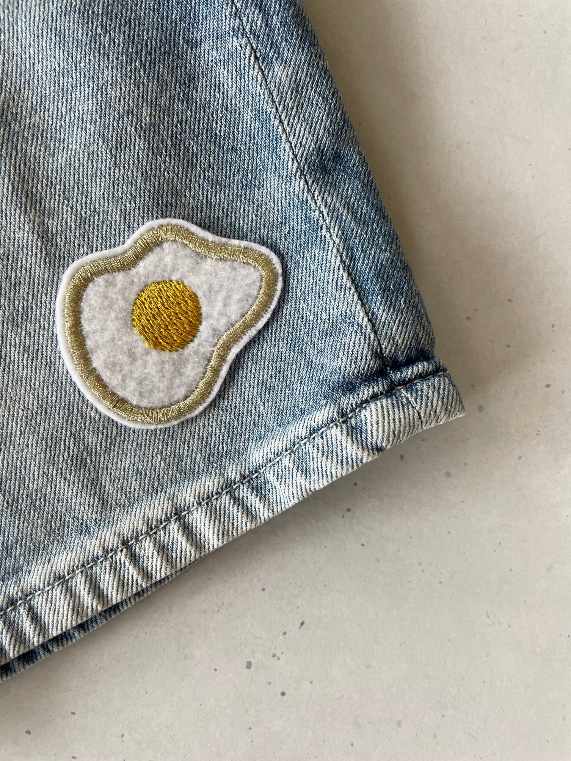 1 Stück Bügelflicken "Spiegelei" glitzer von Flickli