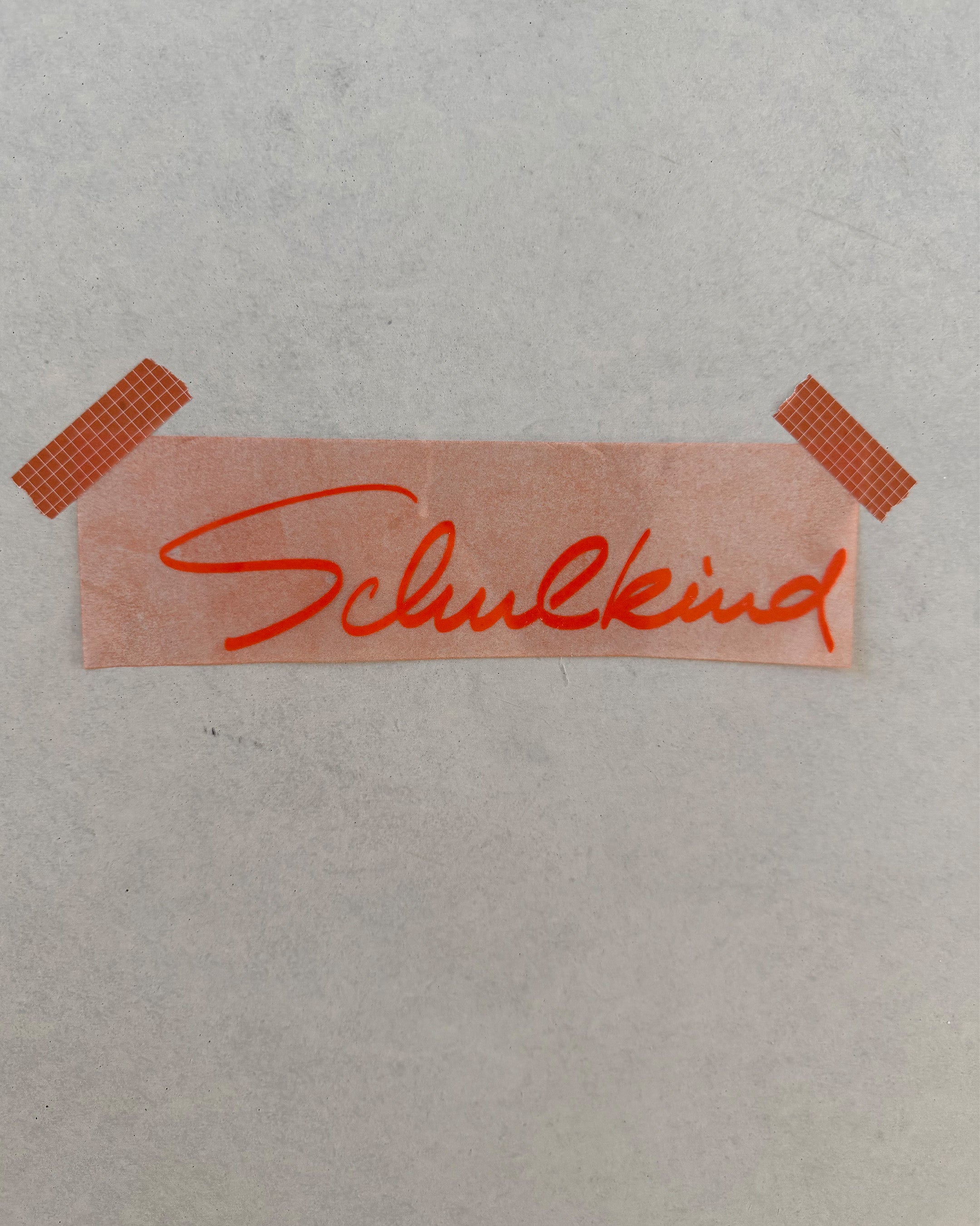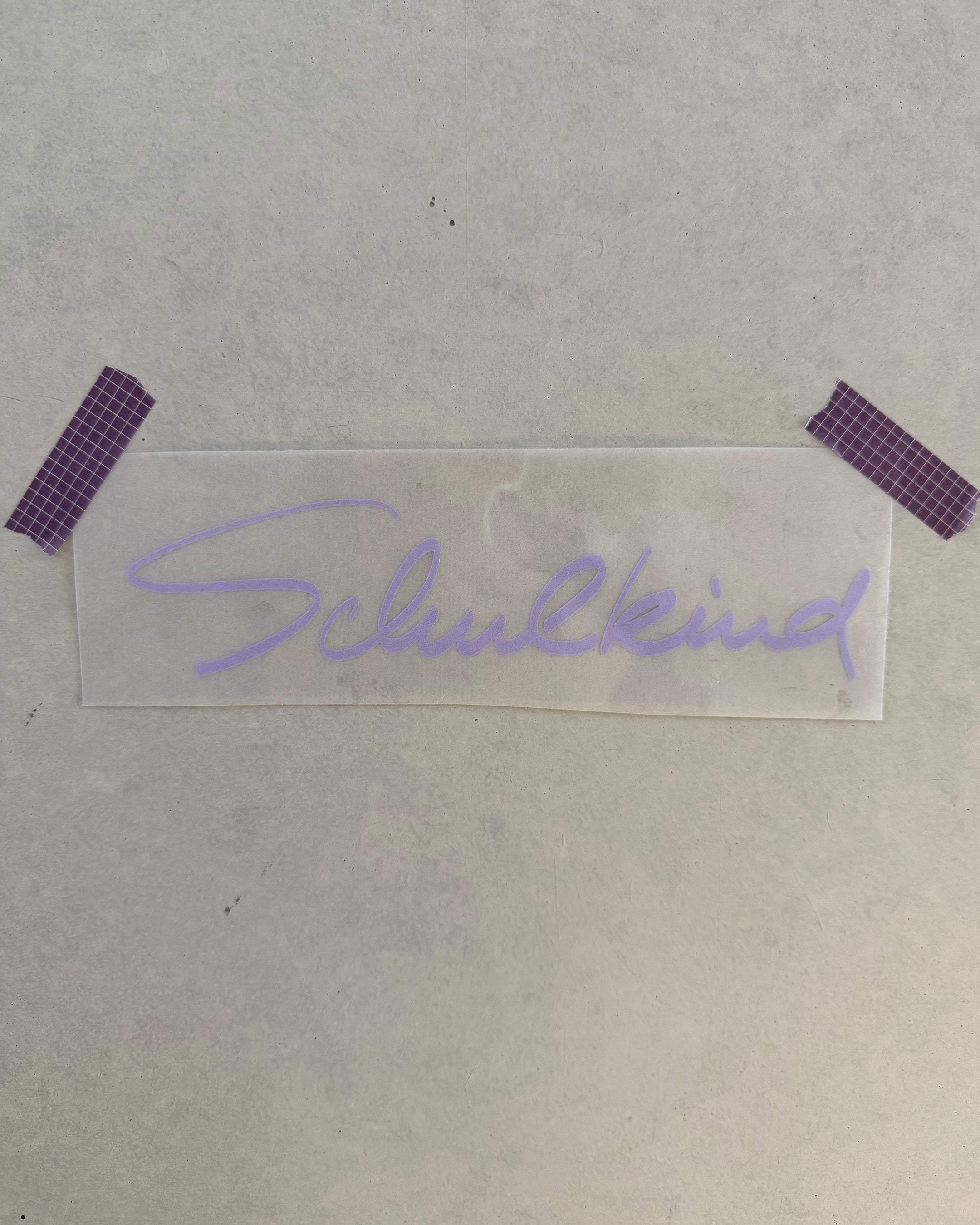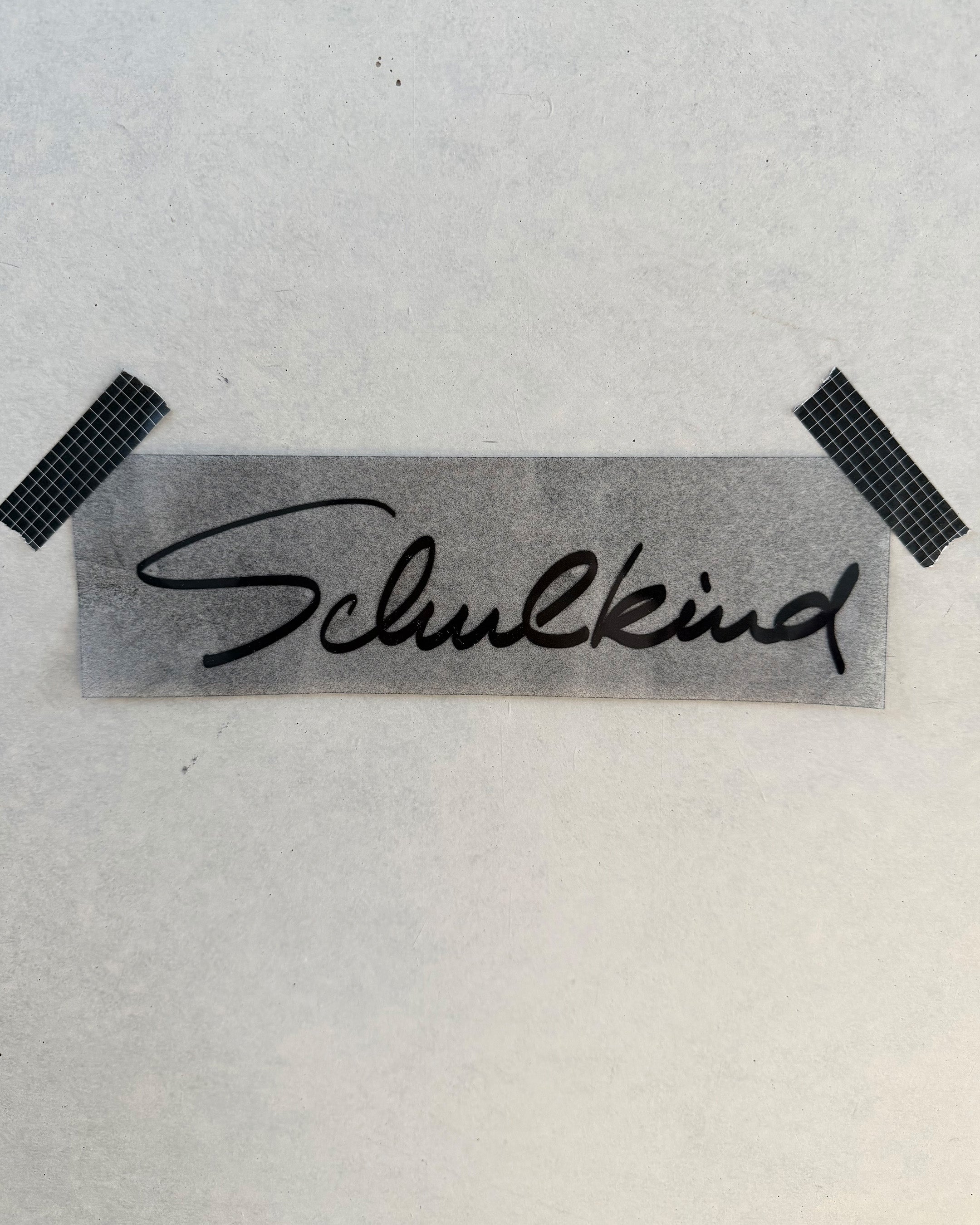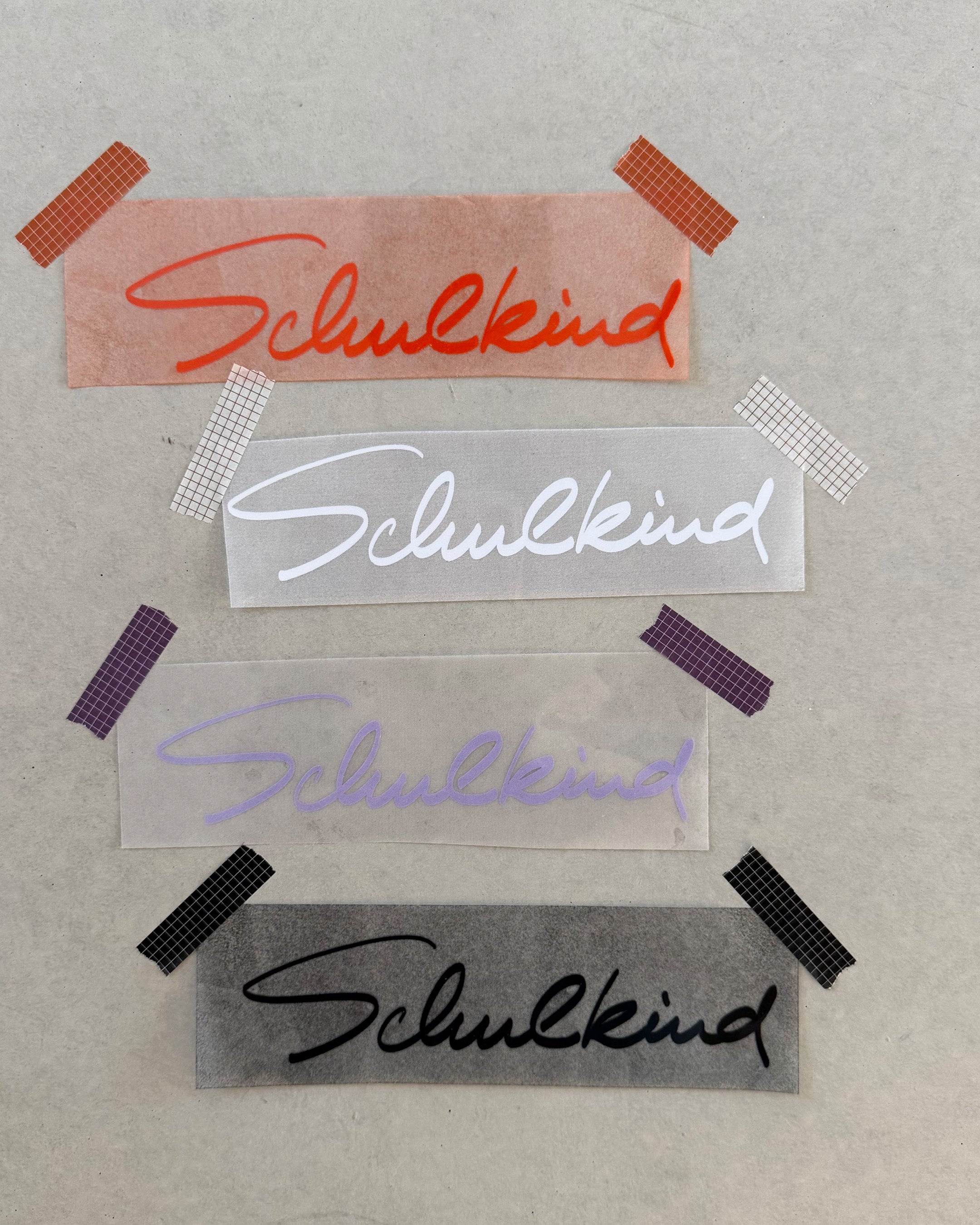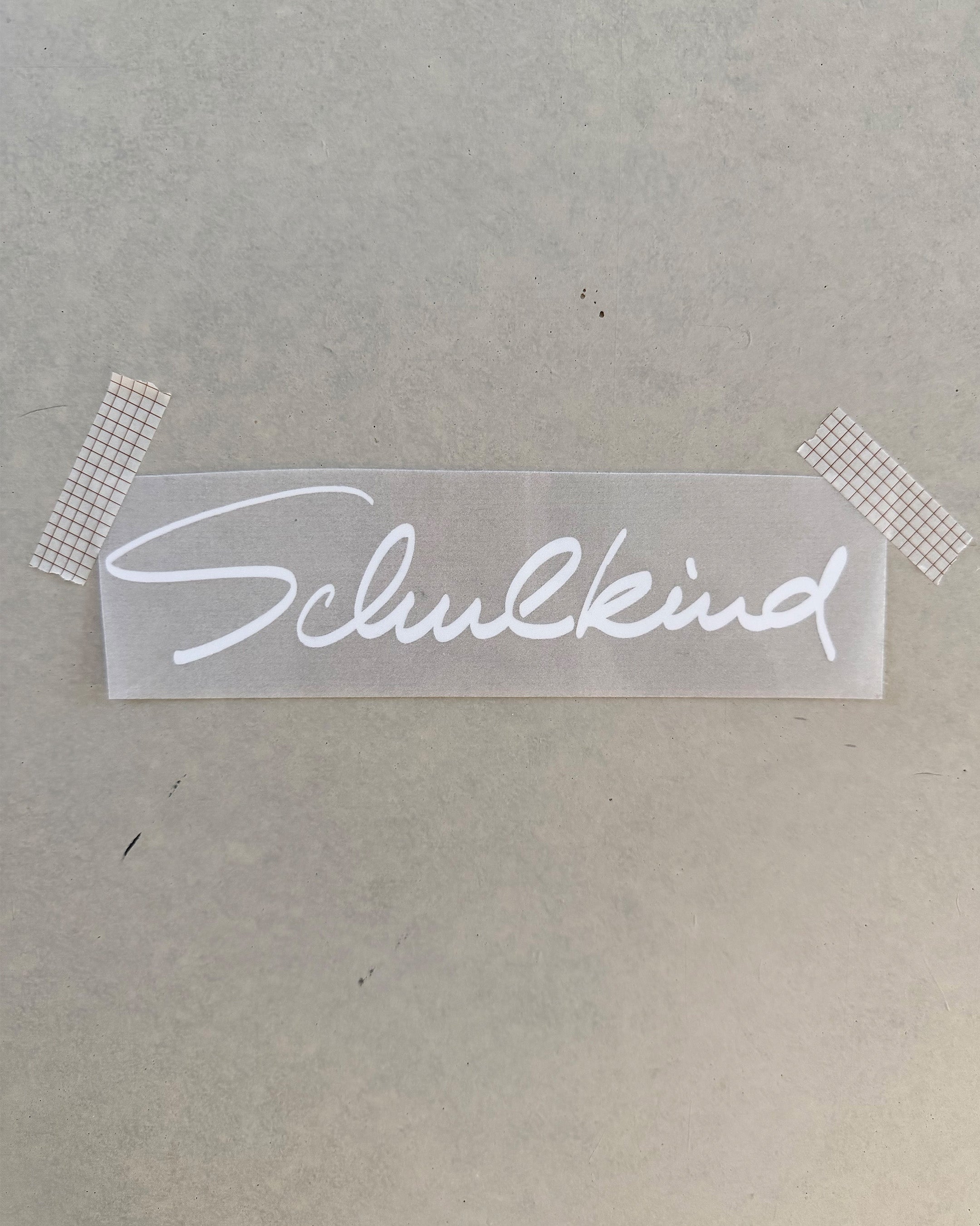1 Stück großes flauschiges Bügelbild "Schulkind" weiß