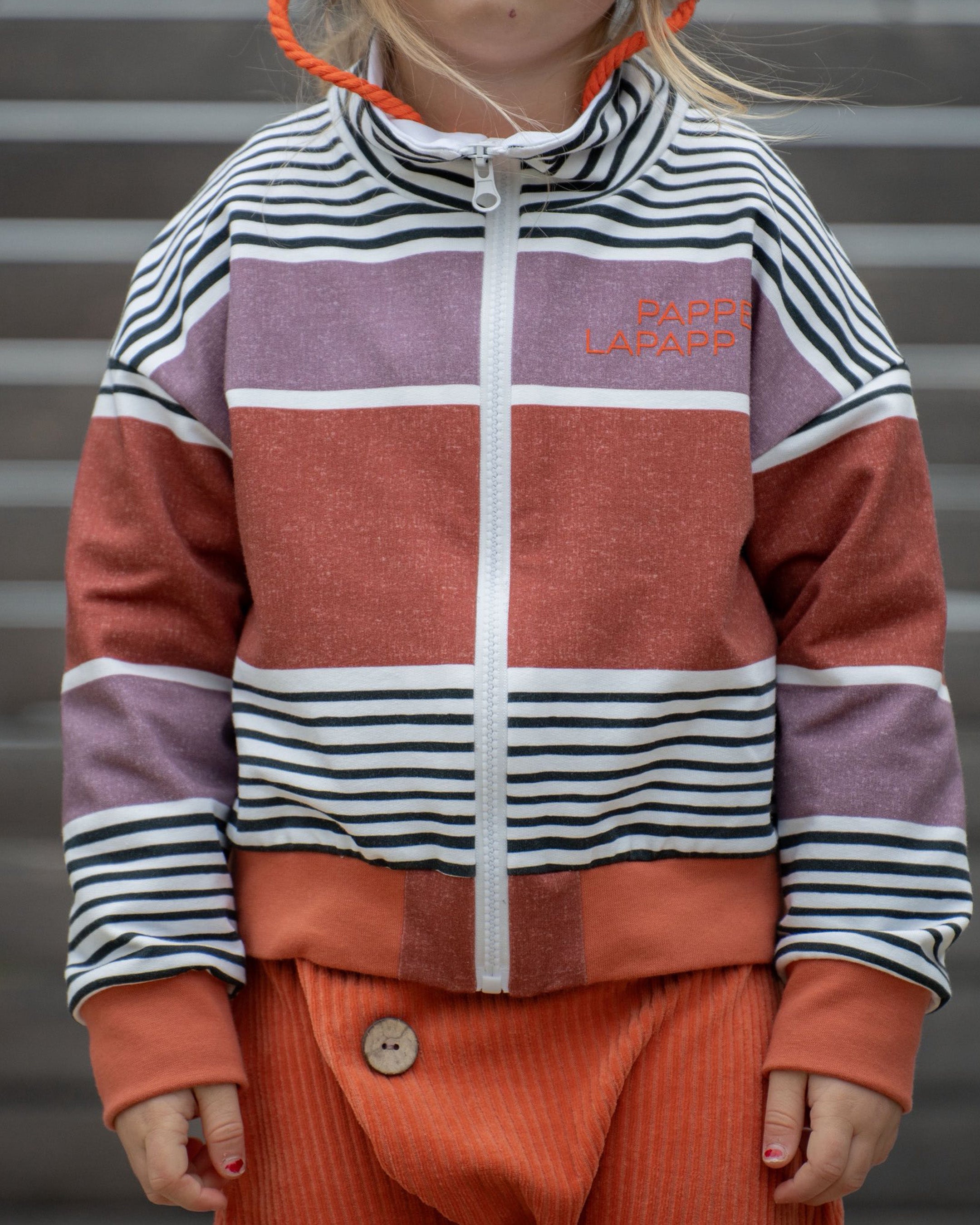 0,5 m super softer Bio-French Terry "Superstreifen" dunkelgrau burnt brick meliert whistful mauve meliert offwhite Meterware