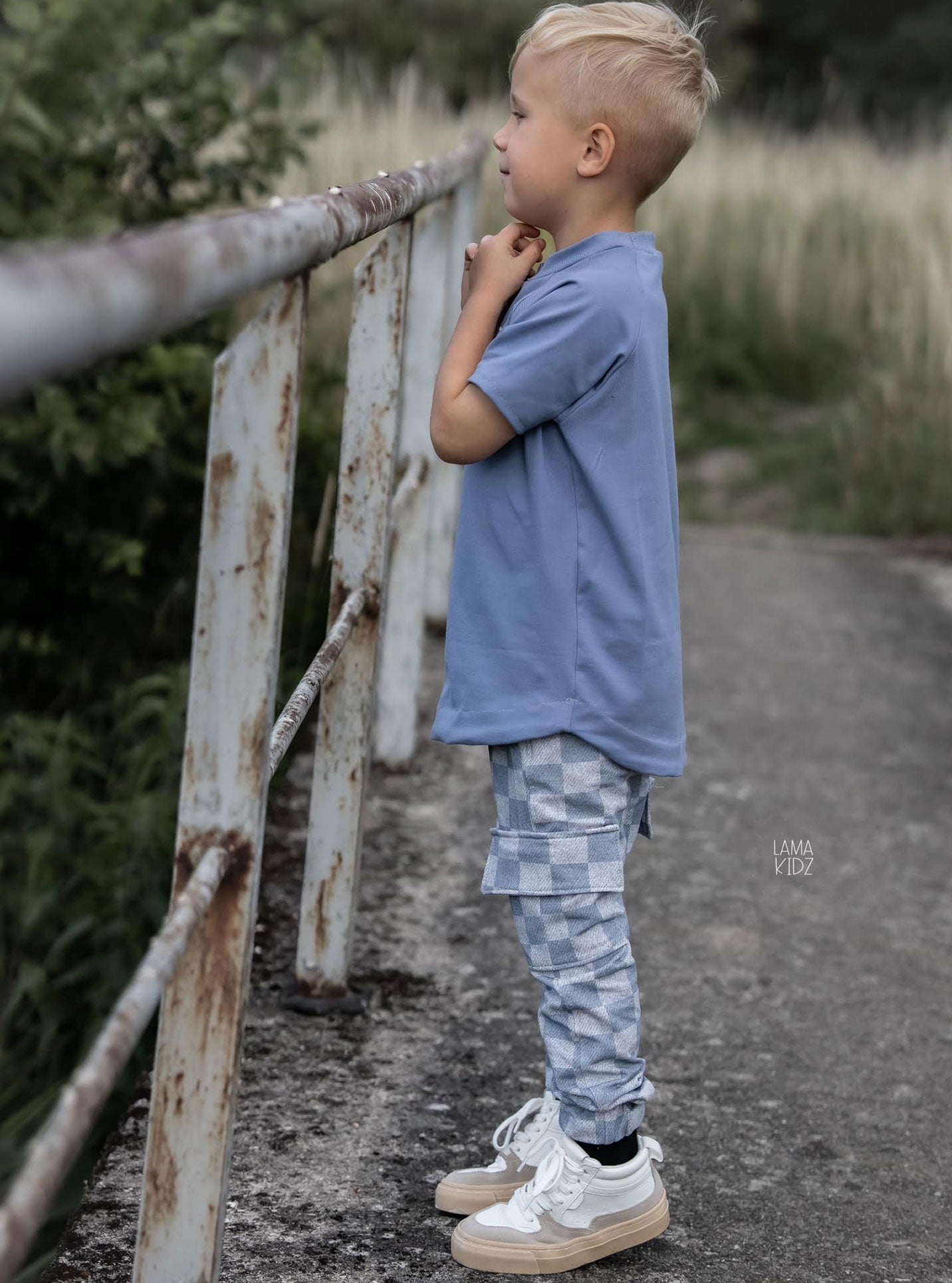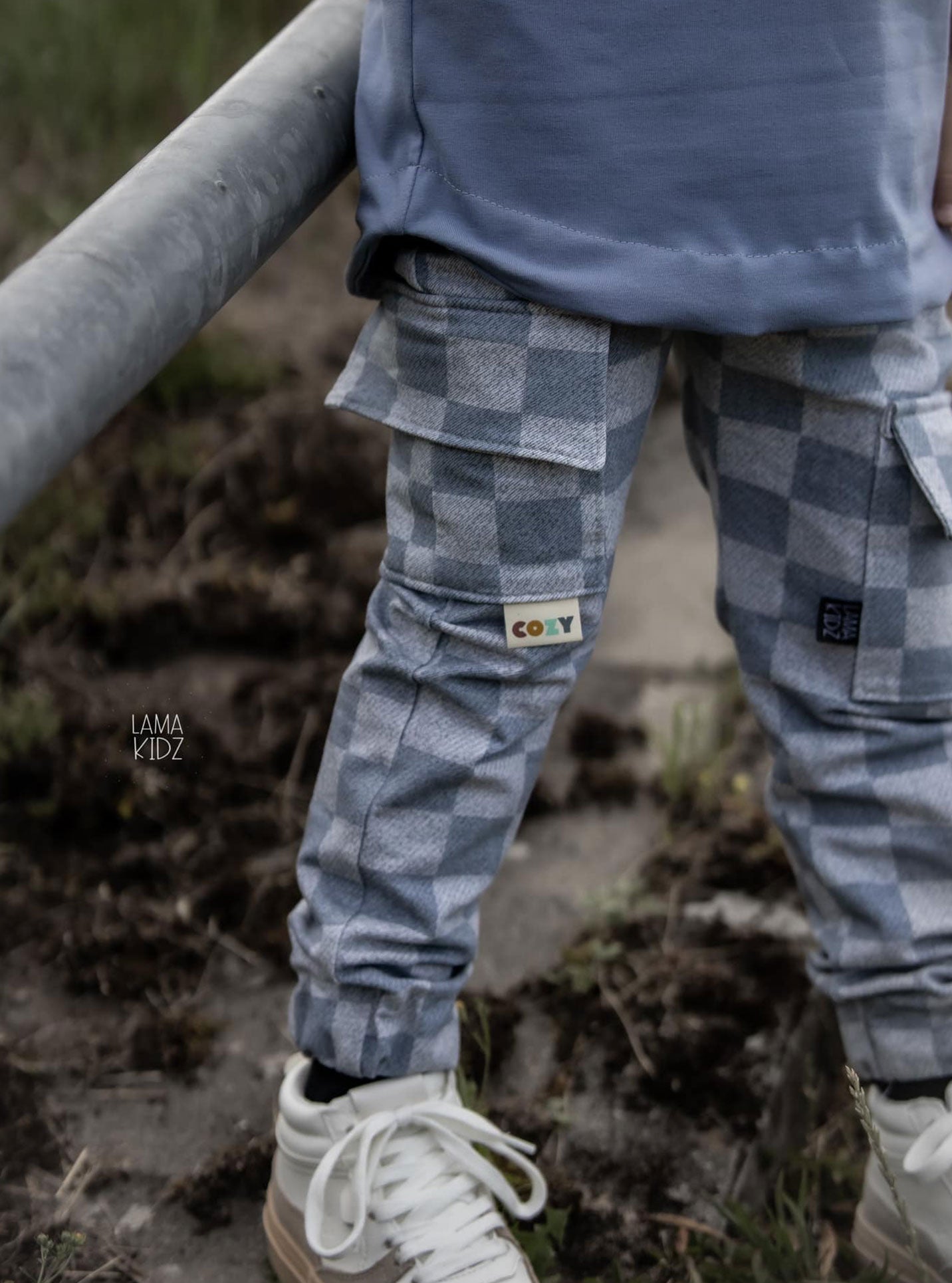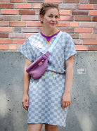 0,5 m super softer Bio-French Terry "used denim Schachbrett" blaugrau Meterware
