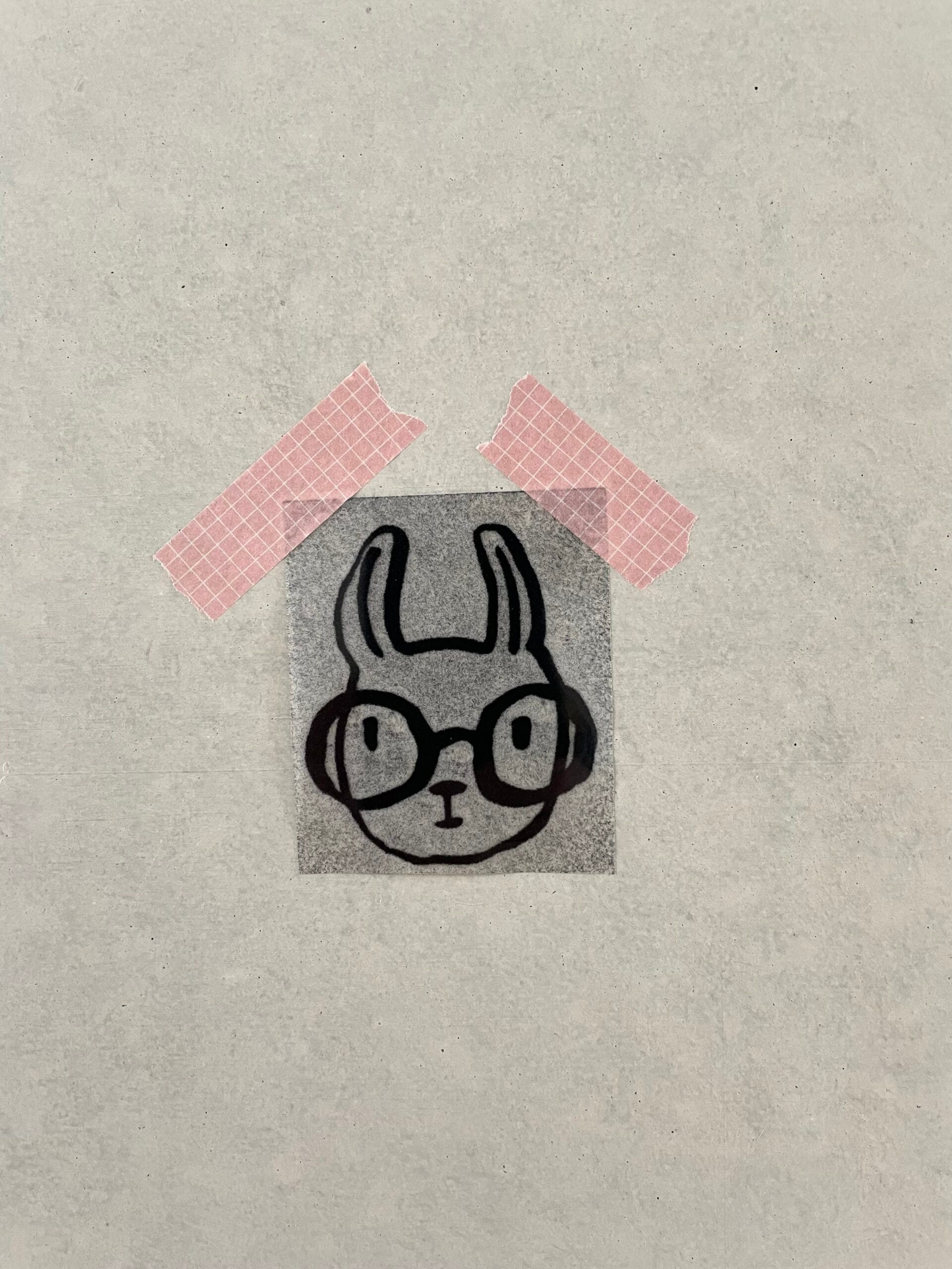 1 Stück kleines flauschiges Bügelbild "Hase mit Brille" schwarz