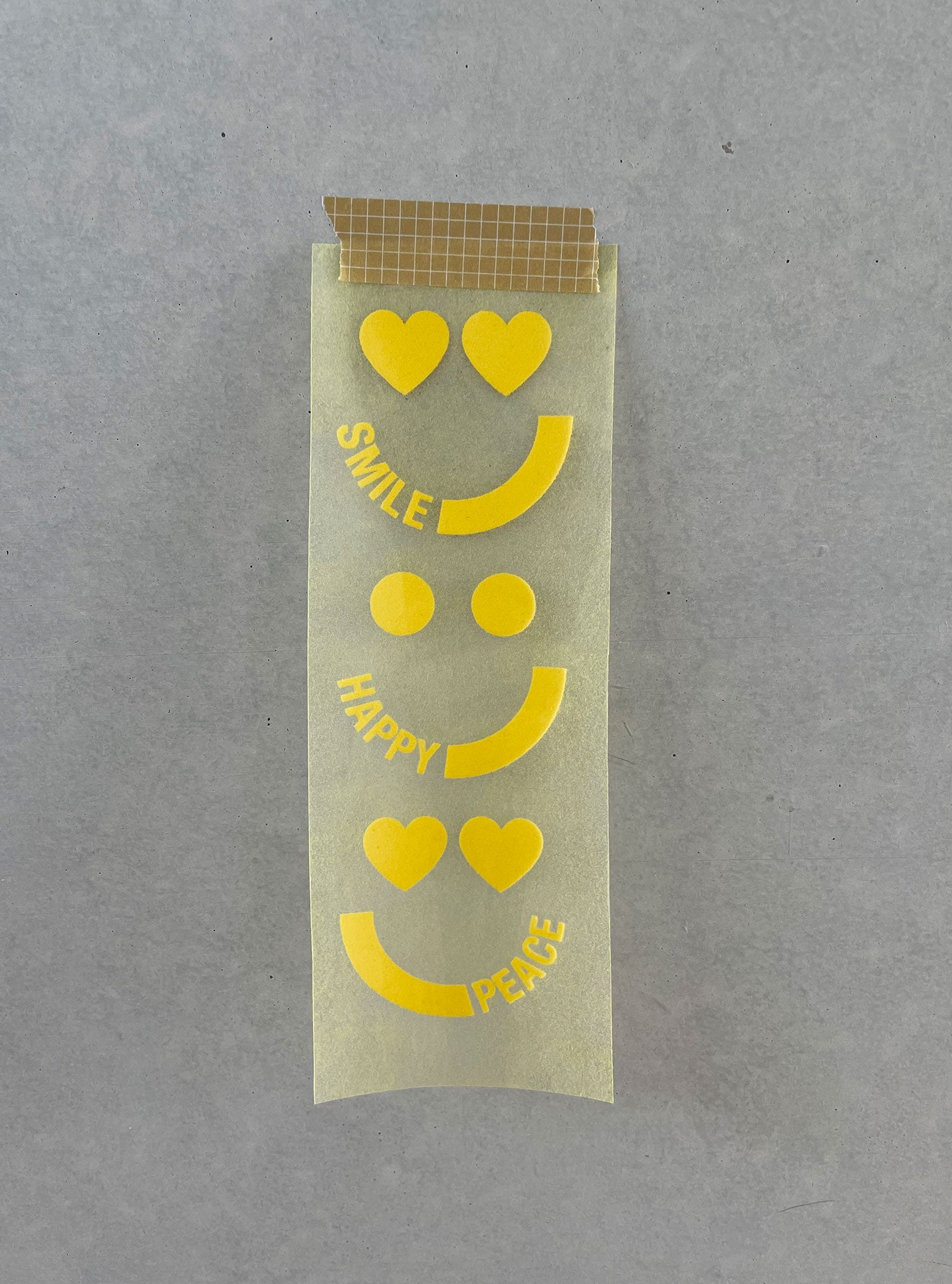 3er Set flauschige Bügelbilder "Smileys" zitronengelb