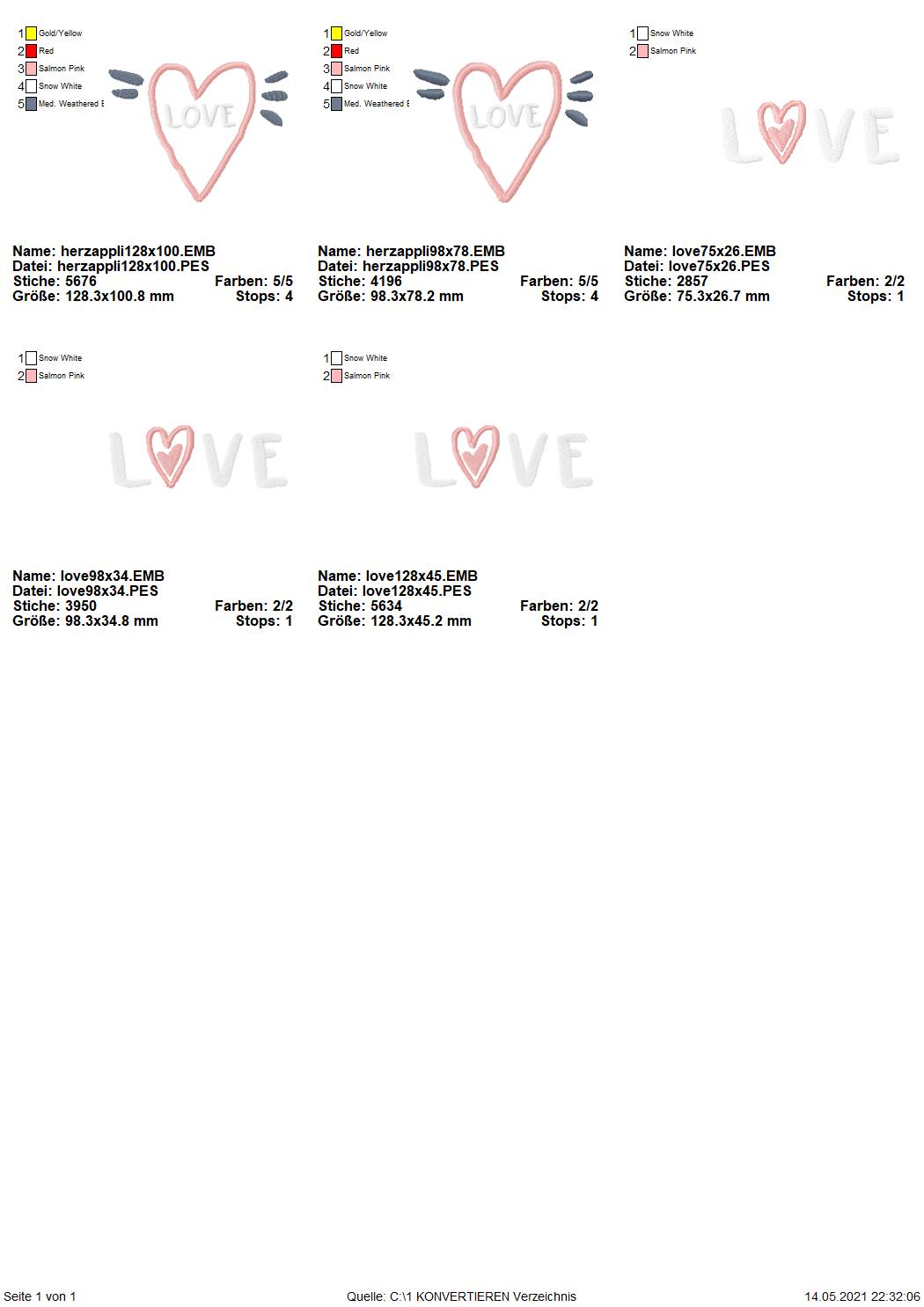 0-Euro-Datei! Stickdatei Set "Love"