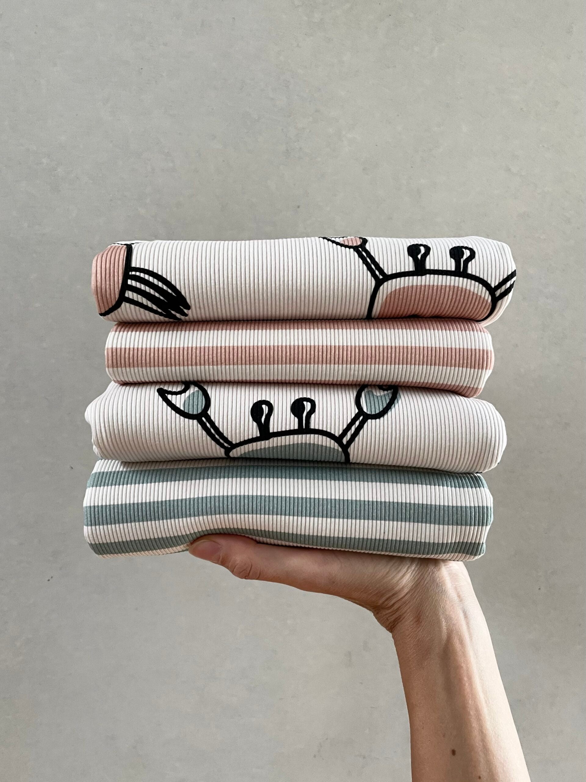 1,00 m Bio Rippjersey Krabben mint hellbeige