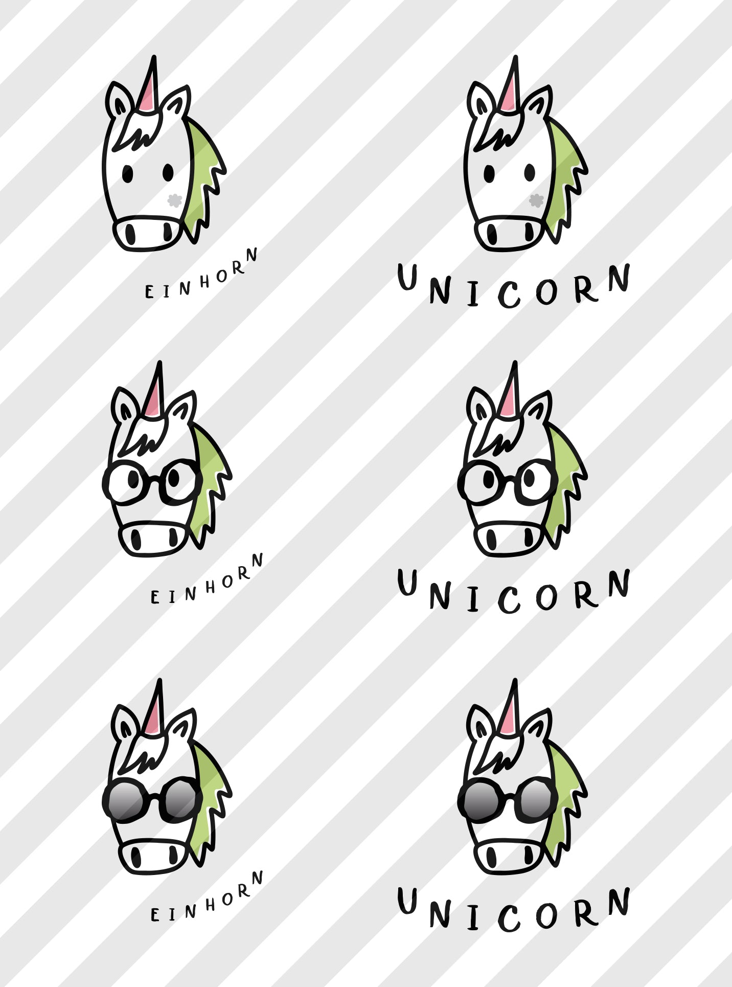 Siebdruck- & Plotterdatei "Einhorn mit und ohne Brille"