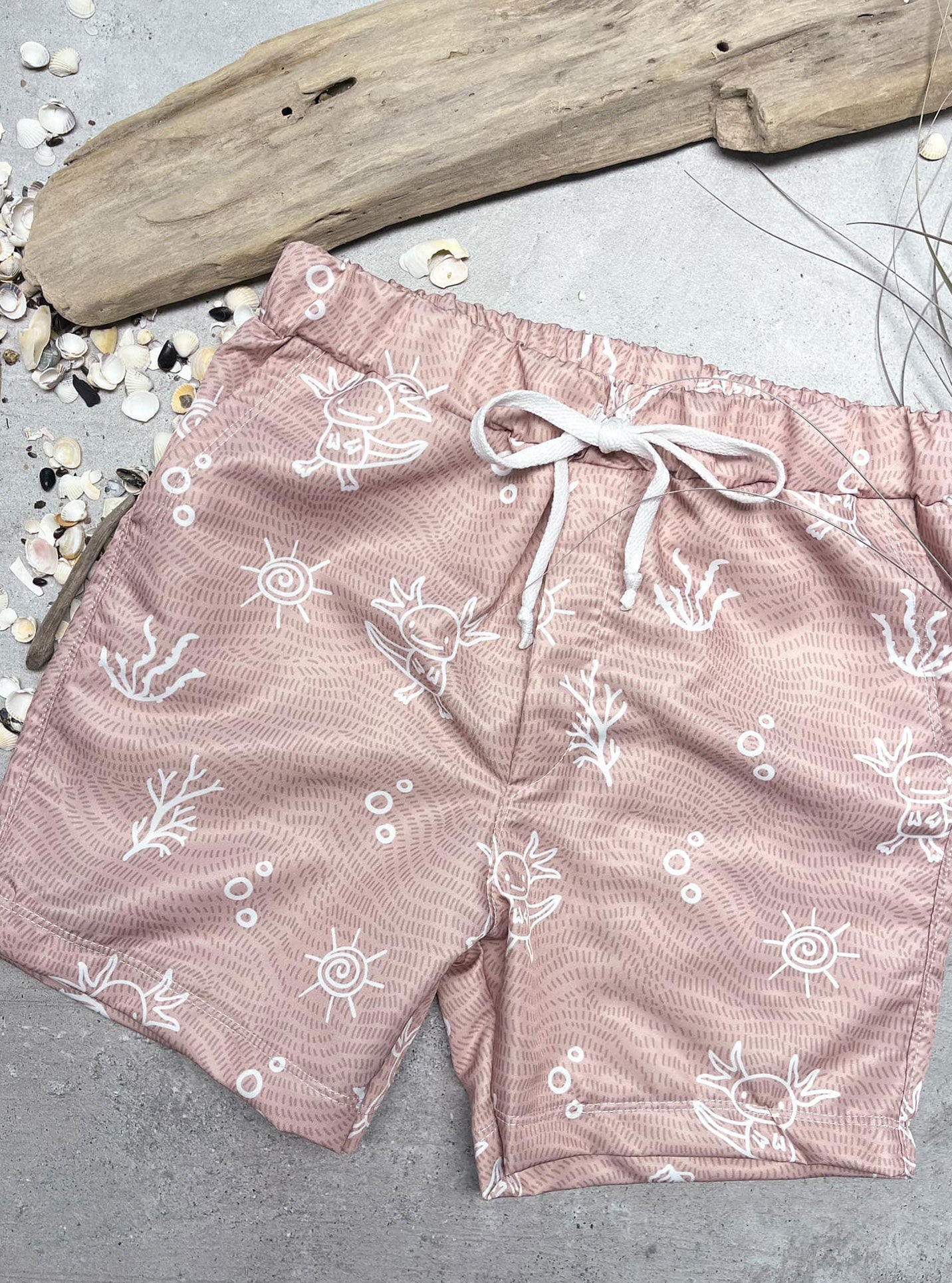 0,5 m Badeshortstoff "Axolotl" pale mauve weiß Meterware