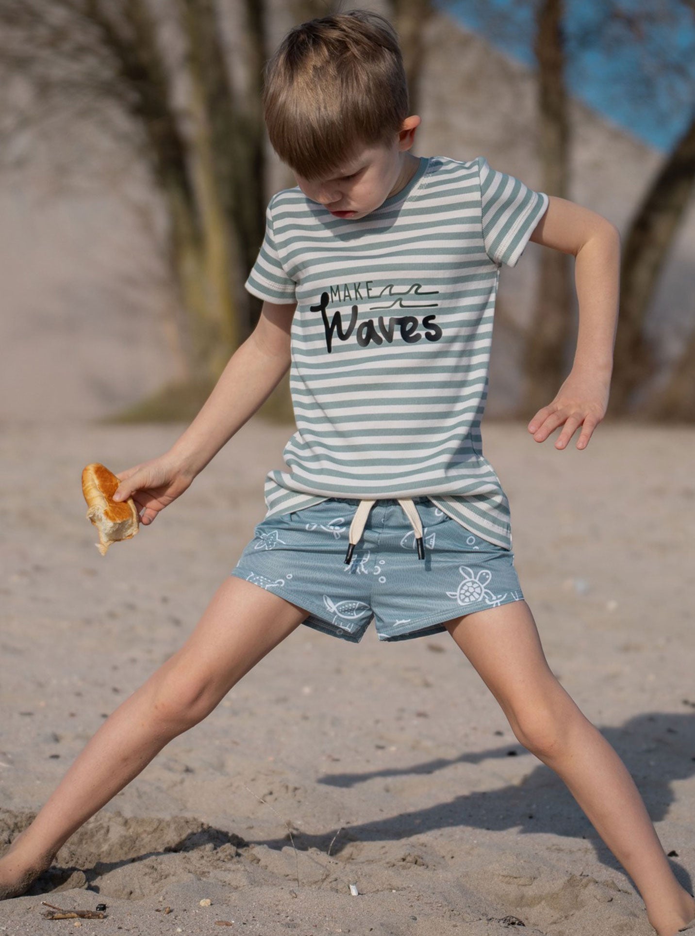 Ideal für locker sitzende Badebekleidung wie Badeshorts und genauso geeignet für sportliche Styles wie Sportshorts. Ein Stoff, der beides kann und dabei gut aussieht.