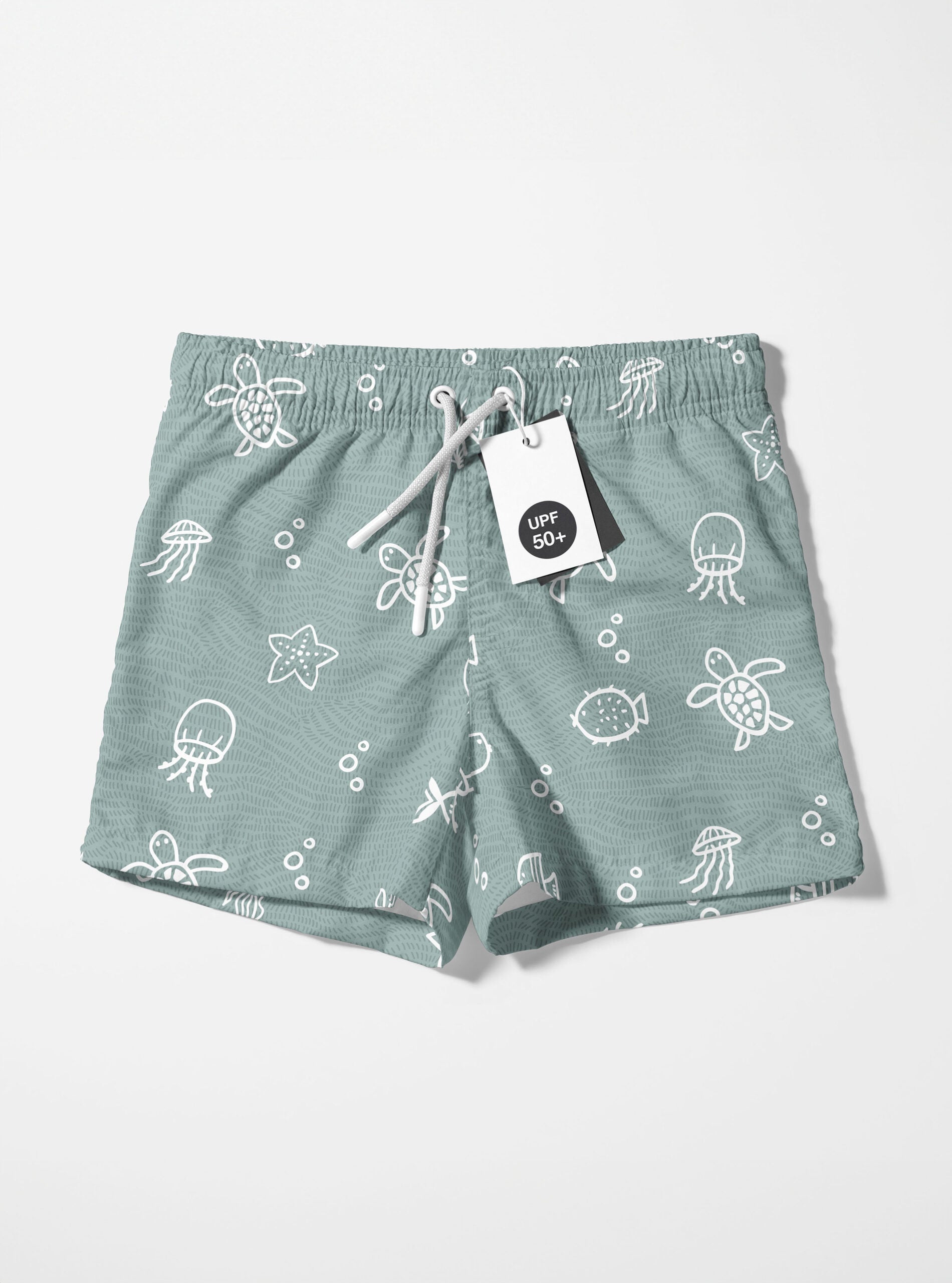 0,5 m Badeshortstoff "Unterwasserwelt" mint weiß Meterware