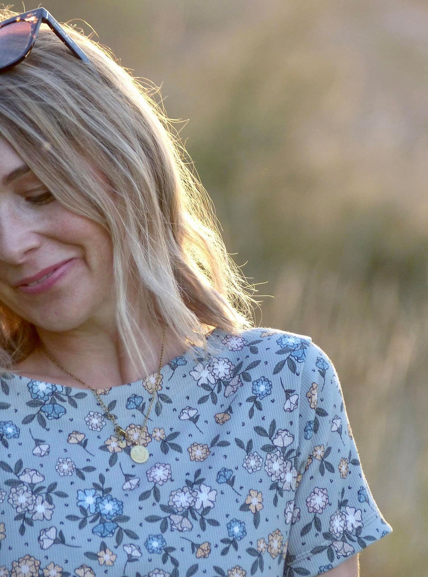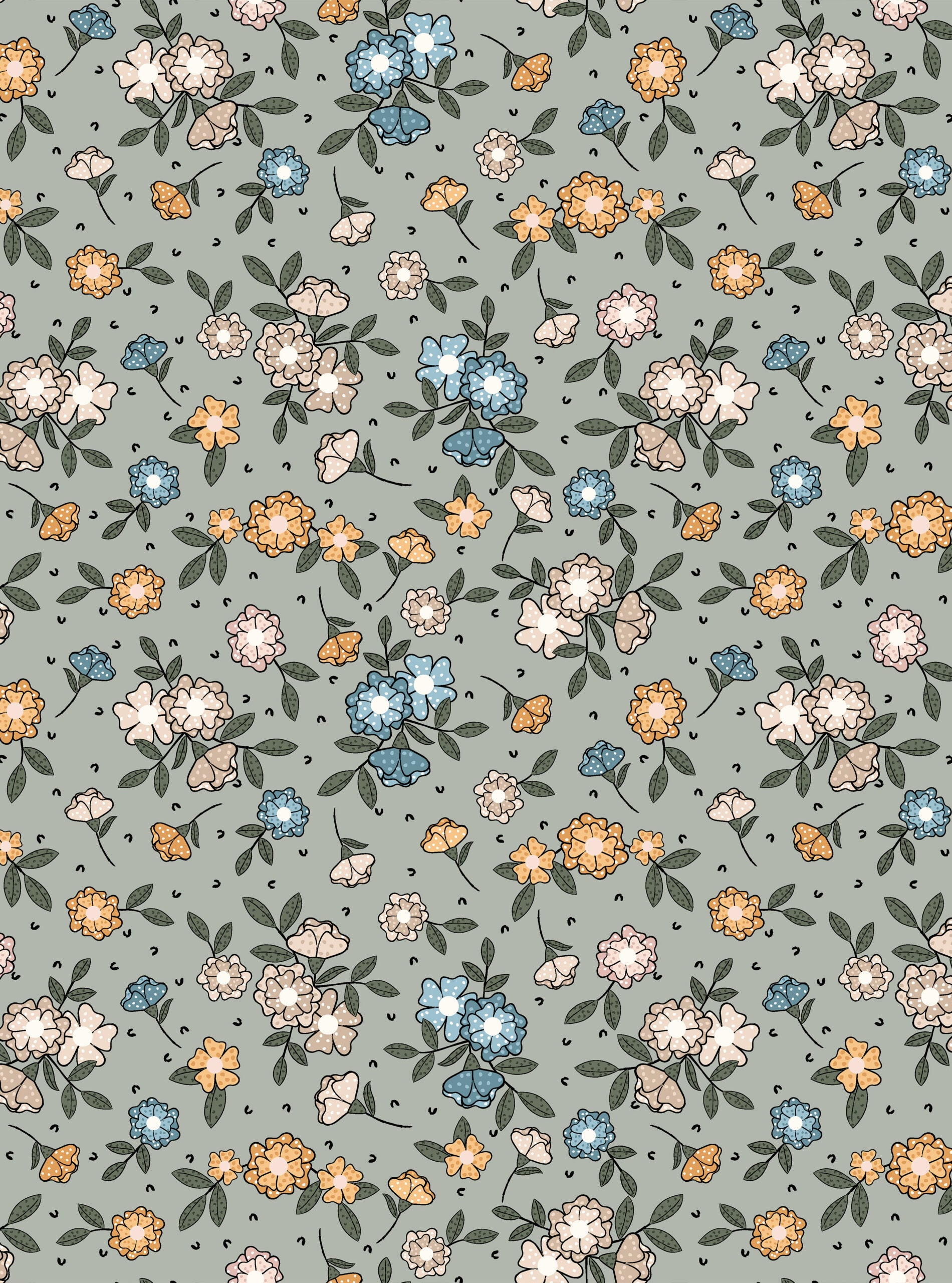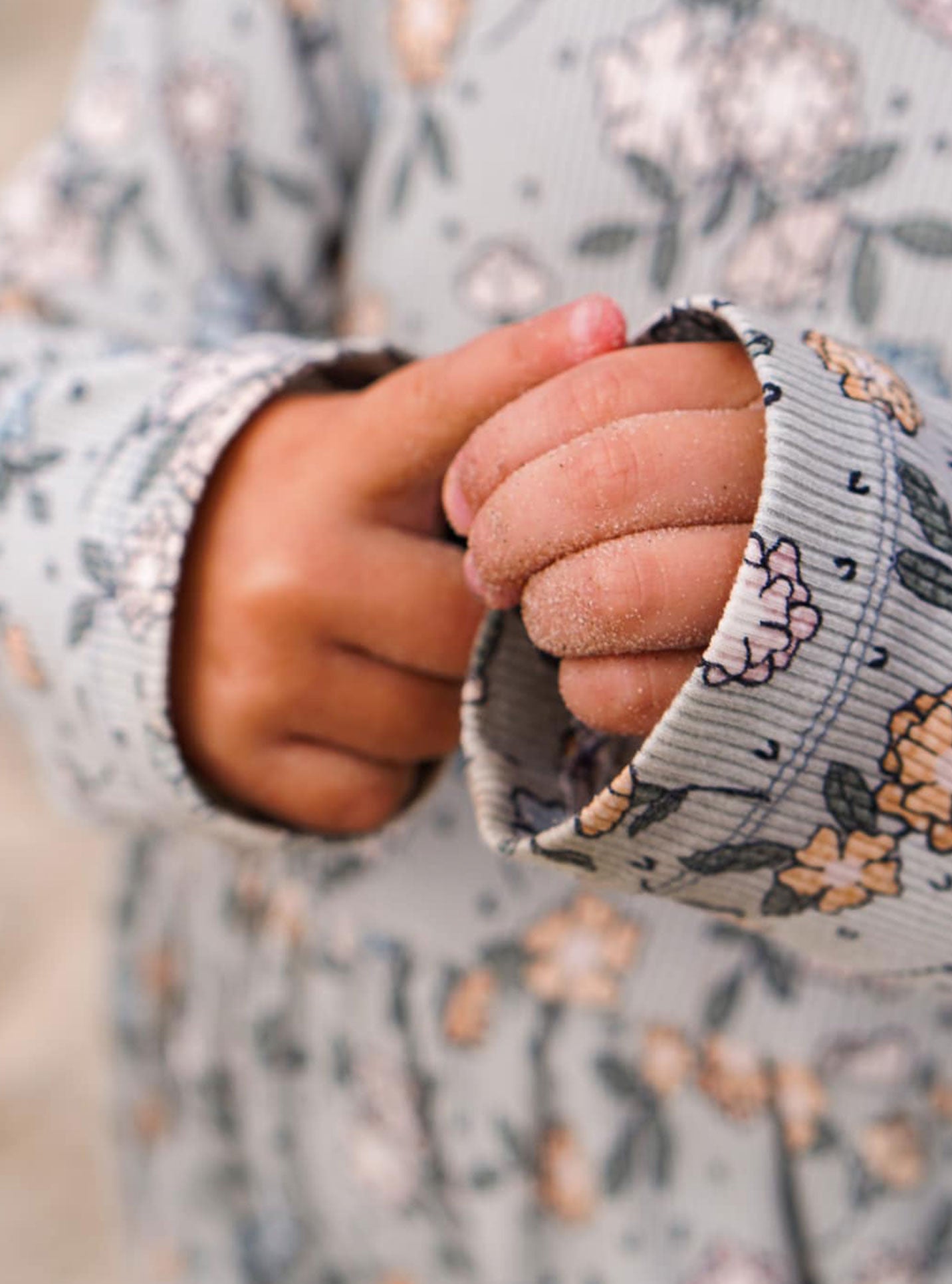 0,5 m Bio-Rippjersey "kleine Blumen" salbei Meterware
