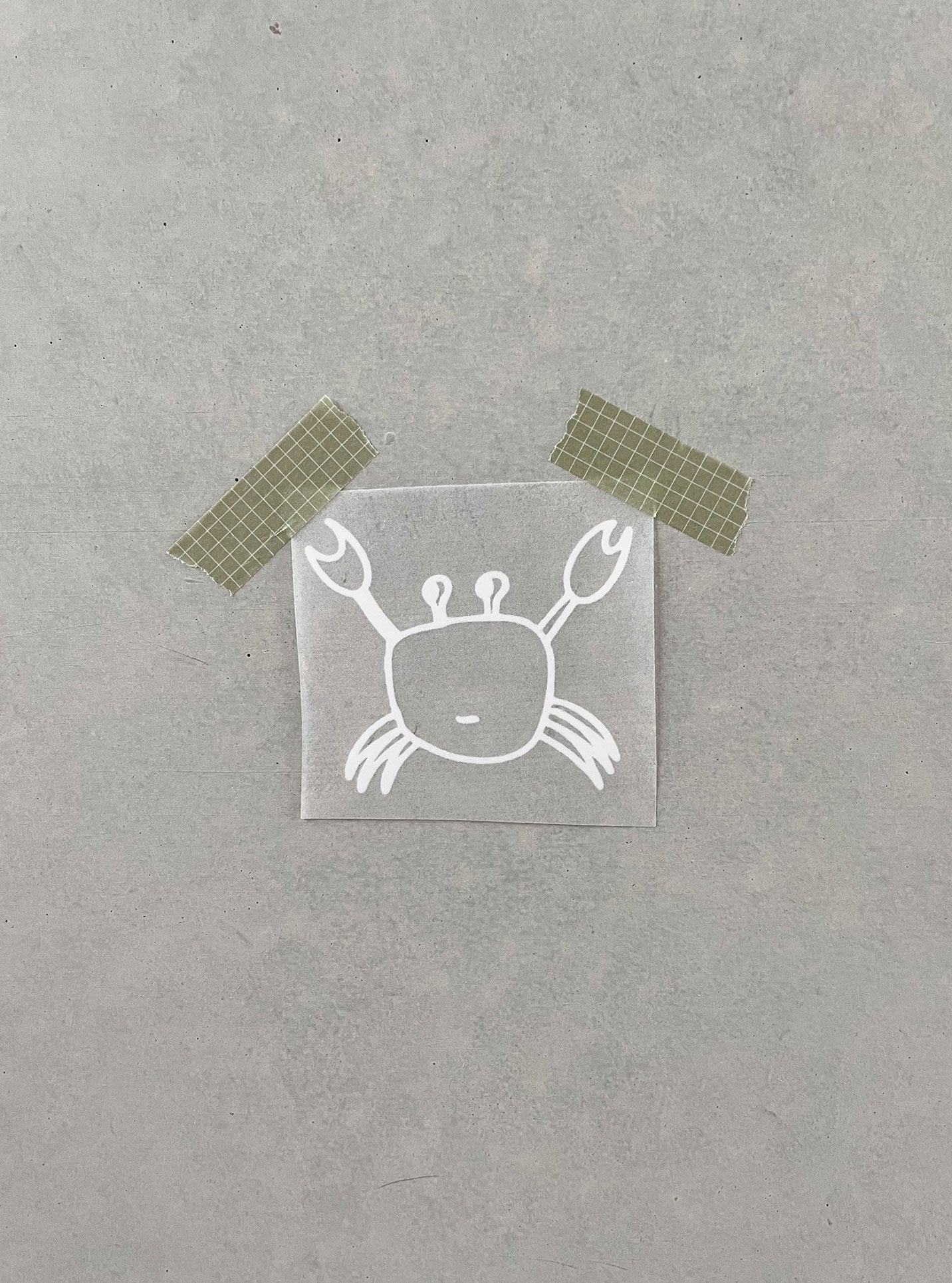1 Stück kleines flauschiges Bügelbild "Krabbe" weiß