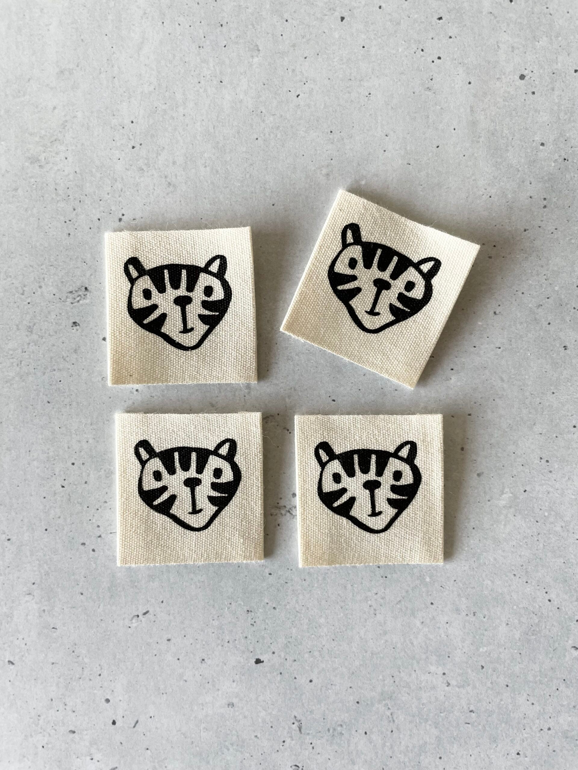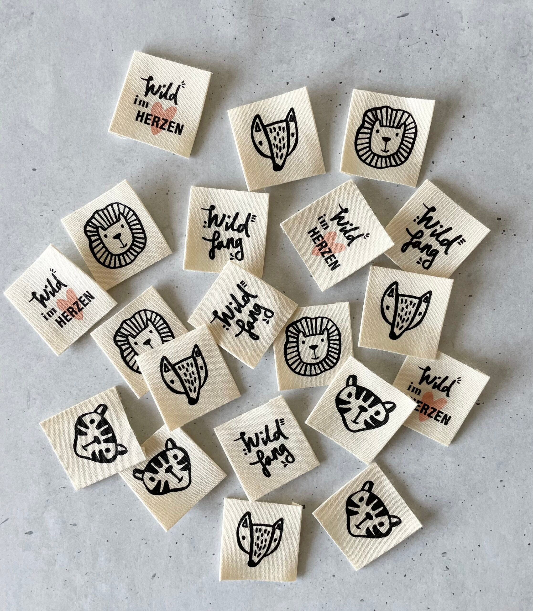 - Das Label in Position bringen und eventuell mit Textilkleber, Nadeln oder Klammern fixieren