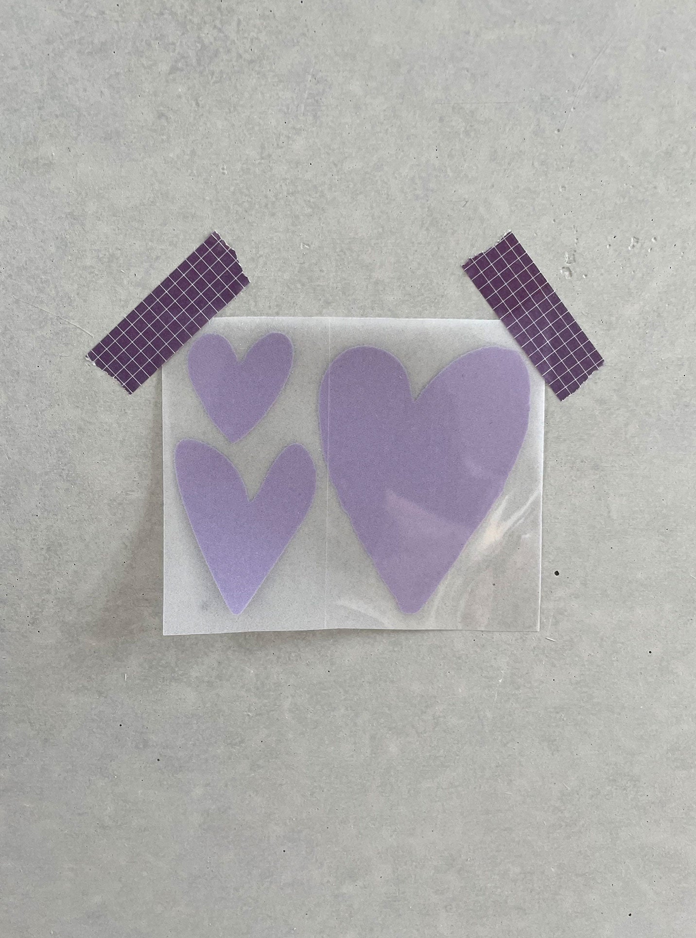 3er Set flauschige Bügelbilder "Herzen" lavendel