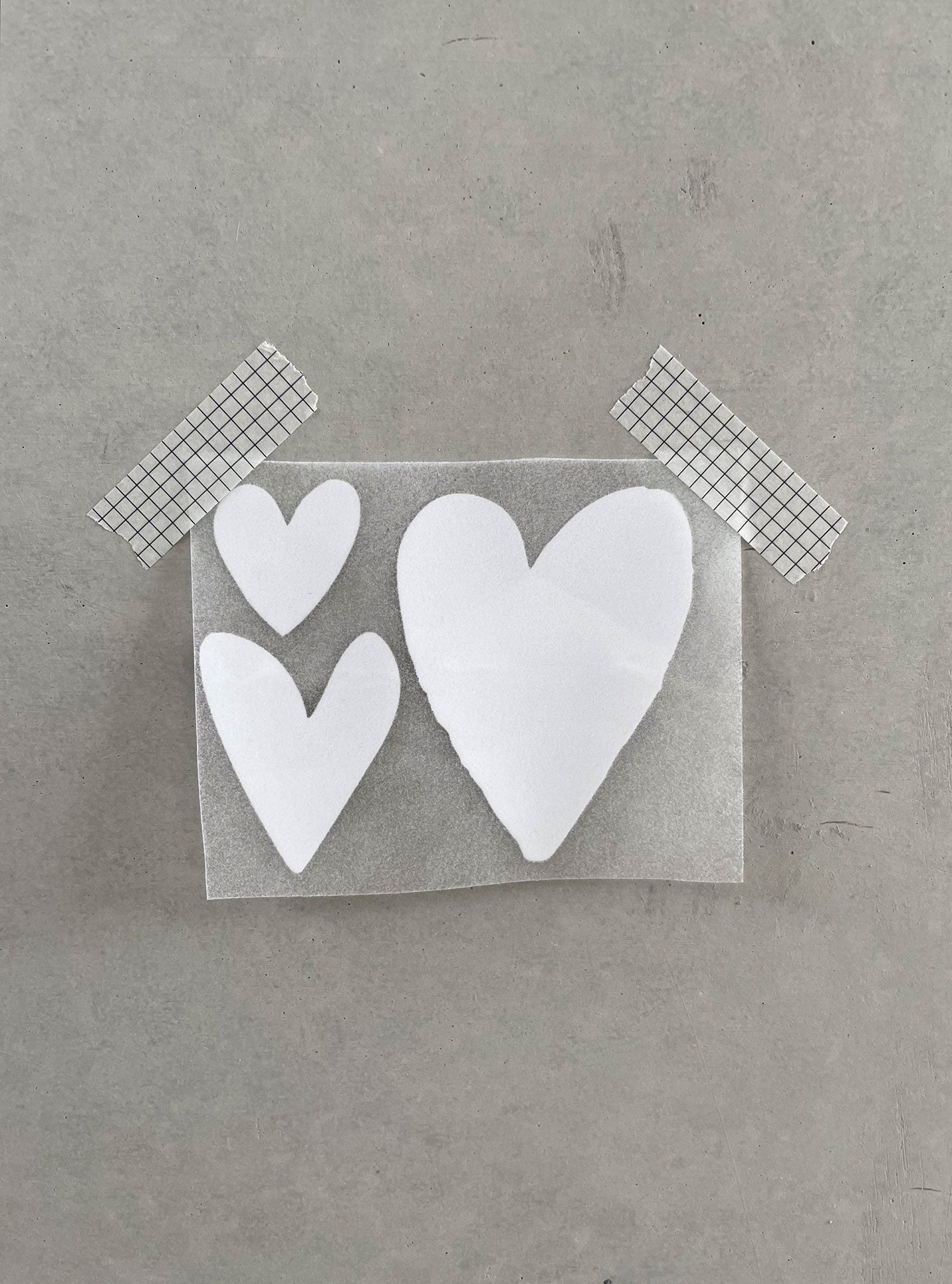 3er Set flauschige Bügelbilder "Herzen" weiß